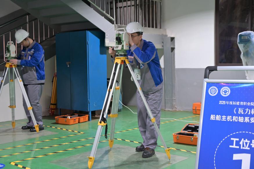 本次競賽由福建省教育廳、福建省人力資源和社會保障廳等八部門聯(lián)合主辦,賽事設(shè)置“船舶軸系理論中心線定位”和“小型柴油機拆裝與調(diào)試”兩大核心模塊,重點考察選手的精密測量、設(shè)備調(diào)試及工程實踐能力。通過真崗實境的操作比拼,充分展現(xiàn)了高職院校學(xué)子扎實的專業(yè)功底、精湛的工藝水平和新時代工匠精神。