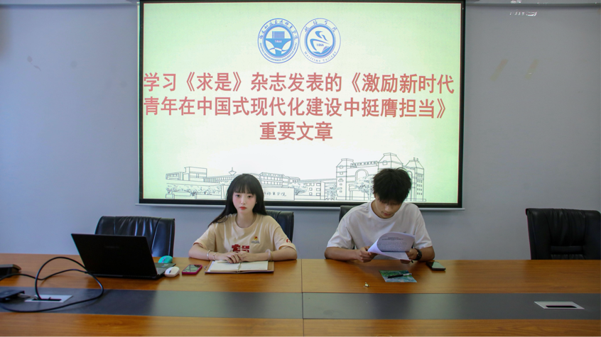 2025 年 5 月 9 日,航海學(xué)院學(xué)生會組織深入學(xué)習(xí),習(xí)近平總書記五四青年節(jié)給新疆謝依特小學(xué)戍邊支教志愿者的回信精神以及《求是》雜志發(fā)表的《激勵新時代青年在中國式現(xiàn)代化建設(shè)中挺膺擔(dān)當(dāng)》重要文章。從習(xí)近平總書記的殷切期望中汲取奮進(jìn)力量,明確青春航向。