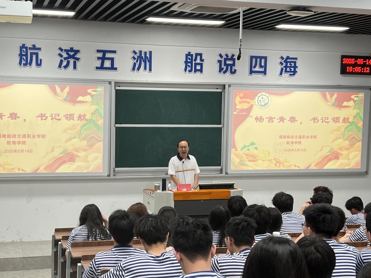 2025年5月14日,航海學(xué)院“我與書記話成長(zhǎng)”主題交流會(huì)在福船園航東大教室溫馨啟幕。學(xué)院黨總支書記江文與航海學(xué)子們圍坐一團(tuán),圍繞學(xué)業(yè)發(fā)展、職業(yè)規(guī)劃、校園生活等同學(xué)們密切關(guān)注的話題,展開了一場(chǎng)敞開心扉的深入交流。整個(gè)活動(dòng)現(xiàn)場(chǎng)氛圍融洽,既有高屋建瓴的思想引領(lǐng),又飽含著春風(fēng)化雨般的人文關(guān)懷。