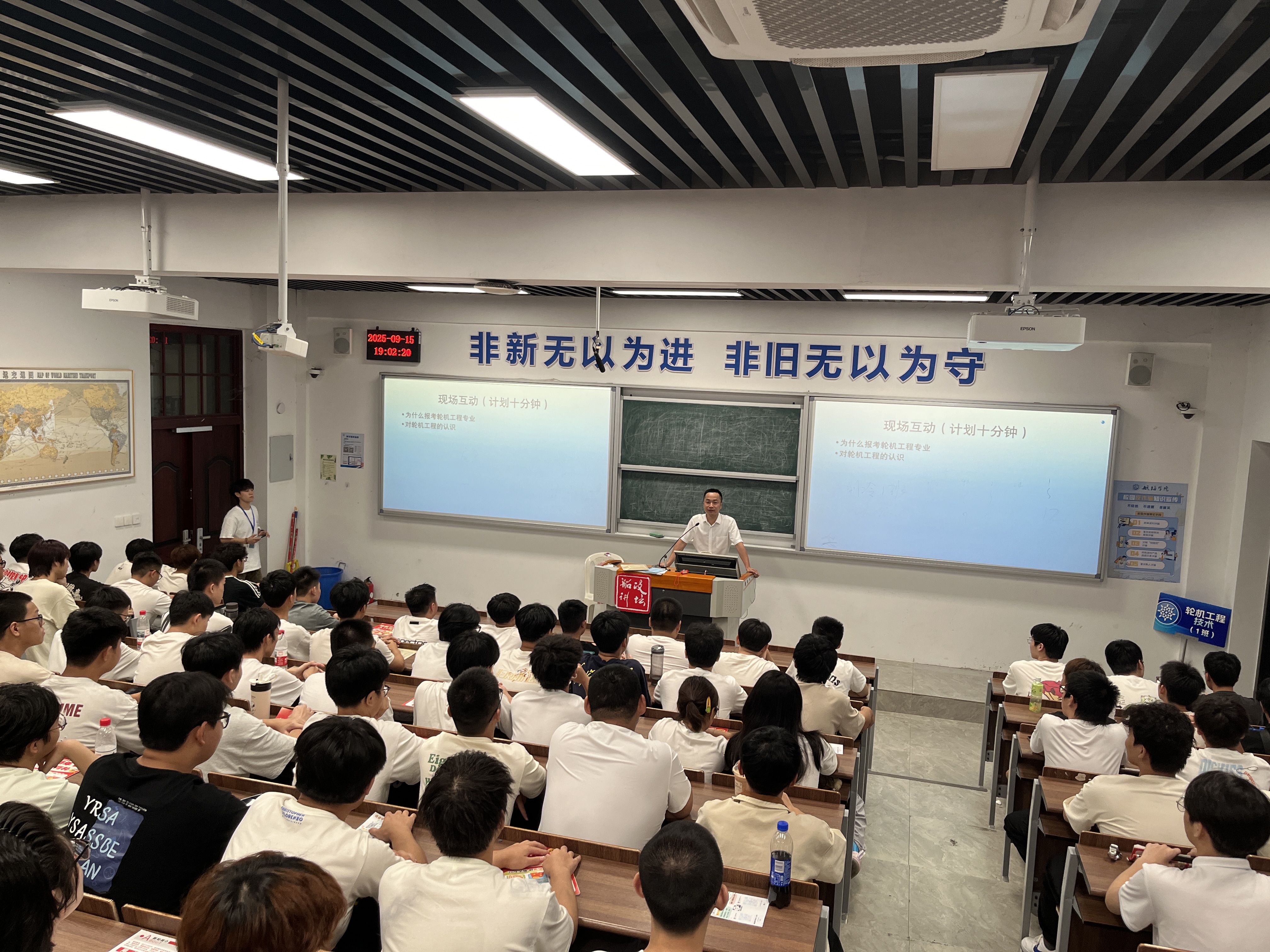 隨著金秋九月的腳步悄然而至,我校航海學(xué)院輪機(jī)工程技術(shù)專業(yè)迎來了又一批滿懷激情與夢想的新生學(xué)子。為了幫助新生更好地適應(yīng)大學(xué)生活,明確專業(yè)方向,激發(fā)學(xué)習(xí)熱情,航海學(xué)院輪機(jī)工程技術(shù)專業(yè)于2025年9月15日晚 1900-2000,在學(xué)院南區(qū)航西大梯形教室成功舉辦了——輪機(jī)工程技術(shù)專業(yè)新生入學(xué)專業(yè)介紹會,為新同學(xué)們開啟了一段全新的知識探索之旅。