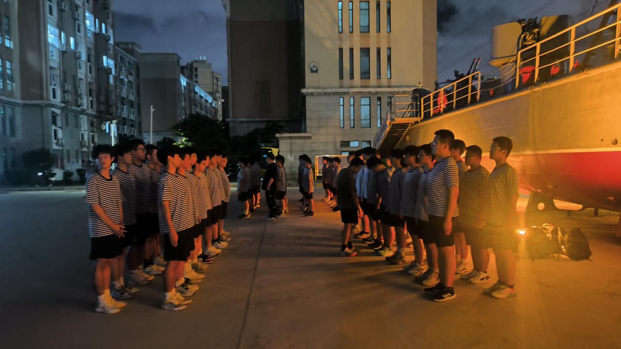 夜間軍事訓(xùn)練作為半軍事化管理的核心環(huán)節(jié),是每一位航海學(xué)子的必修課。在軍事教官的嚴(yán)格指導(dǎo)下,從“站如松、行如風(fēng)”的隊(duì)列基礎(chǔ)到內(nèi)務(wù)整理的細(xì)節(jié),學(xué)子們?cè)谝股袑⒓o(jì)律規(guī)范鍛造成肌肉記憶,為融入嚴(yán)謹(jǐn)?shù)暮胶I畲蛳聢?jiān)實(shí)基礎(chǔ)。這不僅是對(duì)新生的初始塑造,更是常態(tài)化的素質(zhì)養(yǎng)成。各中隊(duì)每周進(jìn)行兩次、每次不少于兩小時(shí)的夜間訓(xùn)練。內(nèi)容涵蓋隊(duì)列、體能及航海特色技能,科學(xué)制定的計(jì)劃旨在淬煉意志。寂靜夜空下的口令與腳步聲,日復(fù)一日地錘煉著學(xué)子面對(duì)未來海上風(fēng)浪所必需的毅力、自律與沉著心理。