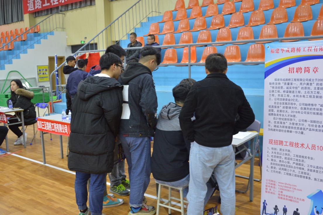 為切實做好我系畢業(yè)生就業(yè)工作,我系大力構(gòu)建畢業(yè)生與用人單位的交流平臺,積極為用人單位輸送應(yīng)用型人才。2017年12月16日上午,在我院文體中心舉辦道路工程系2018屆畢業(yè)生專場招聘會,共有50多家企業(yè)和單位參加。參加此次招聘會的領(lǐng)導(dǎo)有我院陳艷紅副院長、王心金書記、陳若蘅總輔導(dǎo)員以及系部各專業(yè)教師。參加此次招聘會的企業(yè)主要以招聘土建工程類等專業(yè)的應(yīng)屆畢業(yè)生為主。
