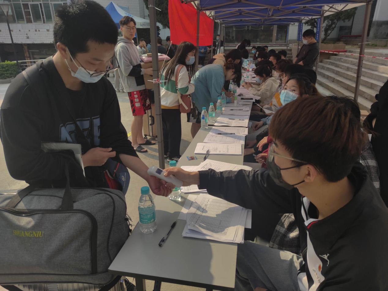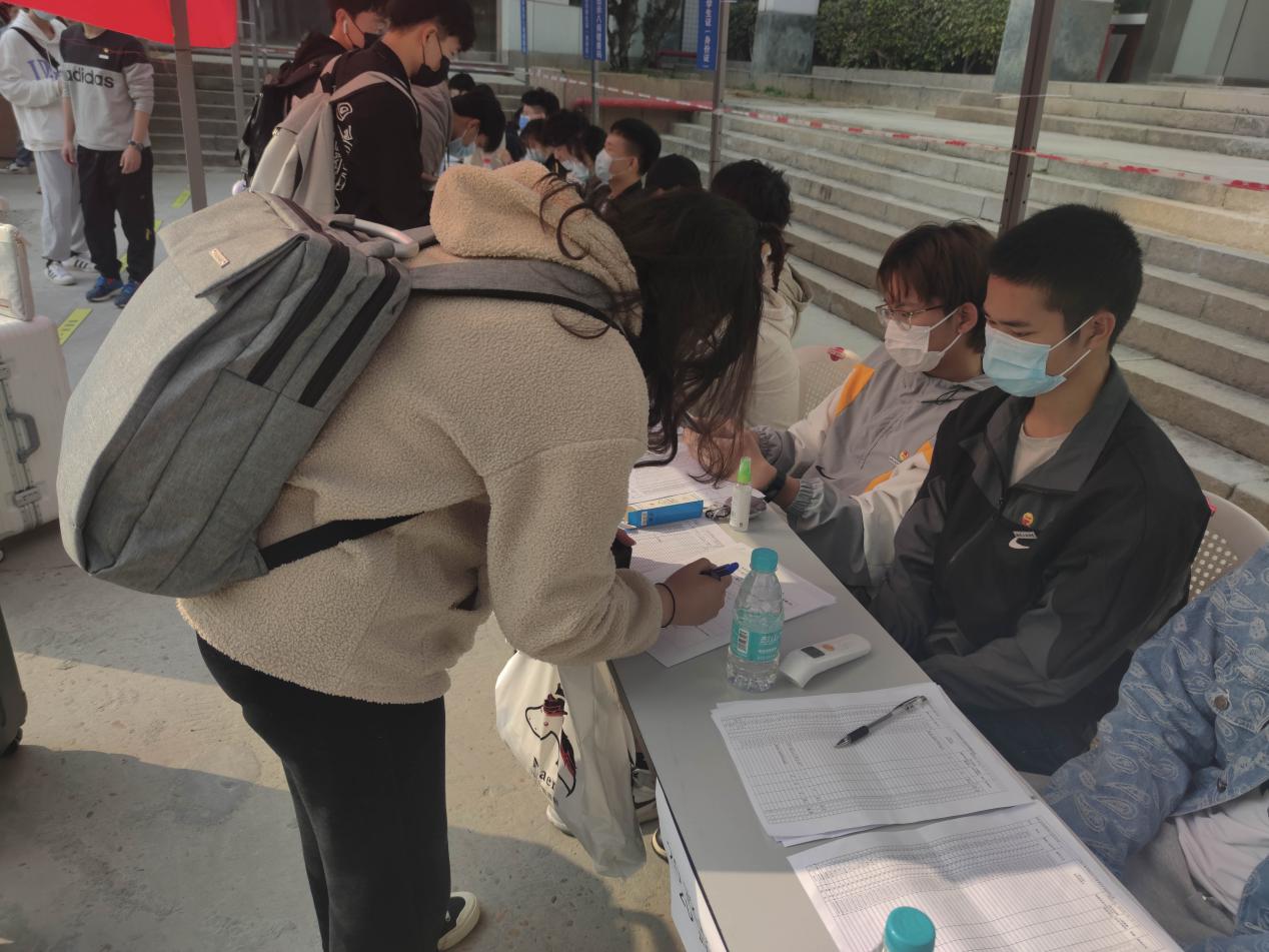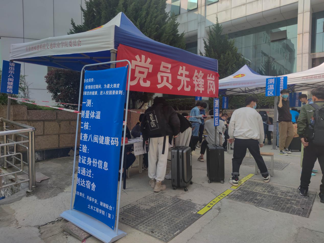 “同學(xué)們,歡迎返校!”在志愿服務(wù)活動過程中,土木工程學(xué)院黨組織認(rèn)真貫徹學(xué)校的返校工作安排和方便返校學(xué)生的宗旨,采取了一系列有效措施:帶領(lǐng)學(xué)生黨員和入黨積極分子耐心細(xì)致地引導(dǎo)返校學(xué)生按照預(yù)定流程掃碼、測溫和消毒。在高蓋山校區(qū)大門口、圖書館前報(bào)到處,都能看到黨員志愿者熱情地指引并幫助返校學(xué)生,耐心地為每位學(xué)生服務(wù),他們嚴(yán)謹(jǐn)?shù)剡M(jìn)行測體溫、填寫表格、確認(rèn)宿舍入住碼,盡心盡責(zé)地做好每一件工作,確保返校工作安全、有序進(jìn)行。