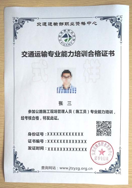 公路施工現(xiàn)場管理人員(簡稱“施工員”)職業(yè)資格證書是由交通運(yùn)輸部職業(yè)資格中心負(fù)責(zé)鑒定和發(fā)證的交通運(yùn)輸專業(yè)能力培訓(xùn)合格證書?!笆┕T”證書加蓋“交通運(yùn)輸部職業(yè)資格中心”鋼印,實(shí)行全國統(tǒng)一編號,是全國通用的職業(yè)資格證書。