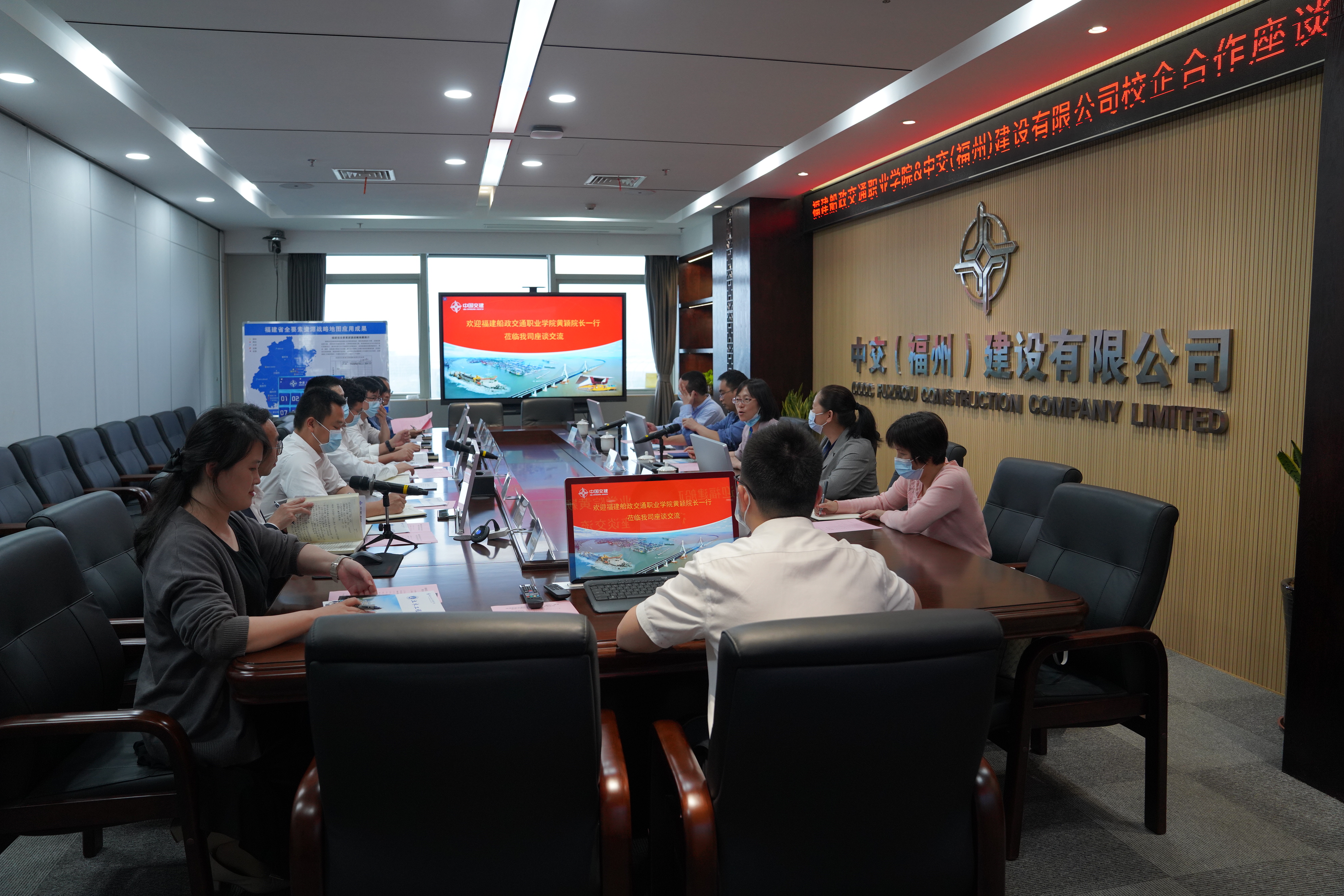 首先,中交(福州)建設(shè)有限公司總經(jīng)理段振益對黃穎院長一行的到訪表示熱烈歡迎,并詳細(xì)介紹了公司的發(fā)展歷程、主要業(yè)績、人才短板及需求、以及對校企合作的需求。隨后黃穎院長介紹船政學(xué)院情況、朱副院長介紹土木工程學(xué)院的辦學(xué)特色、實(shí)驗(yàn)室建設(shè)等方面做了詳細(xì)介紹。雙方就崗位需求、學(xué)生職業(yè)能力培養(yǎng)、畢業(yè)生就業(yè)、校企合作等方面進(jìn)行深入交流。