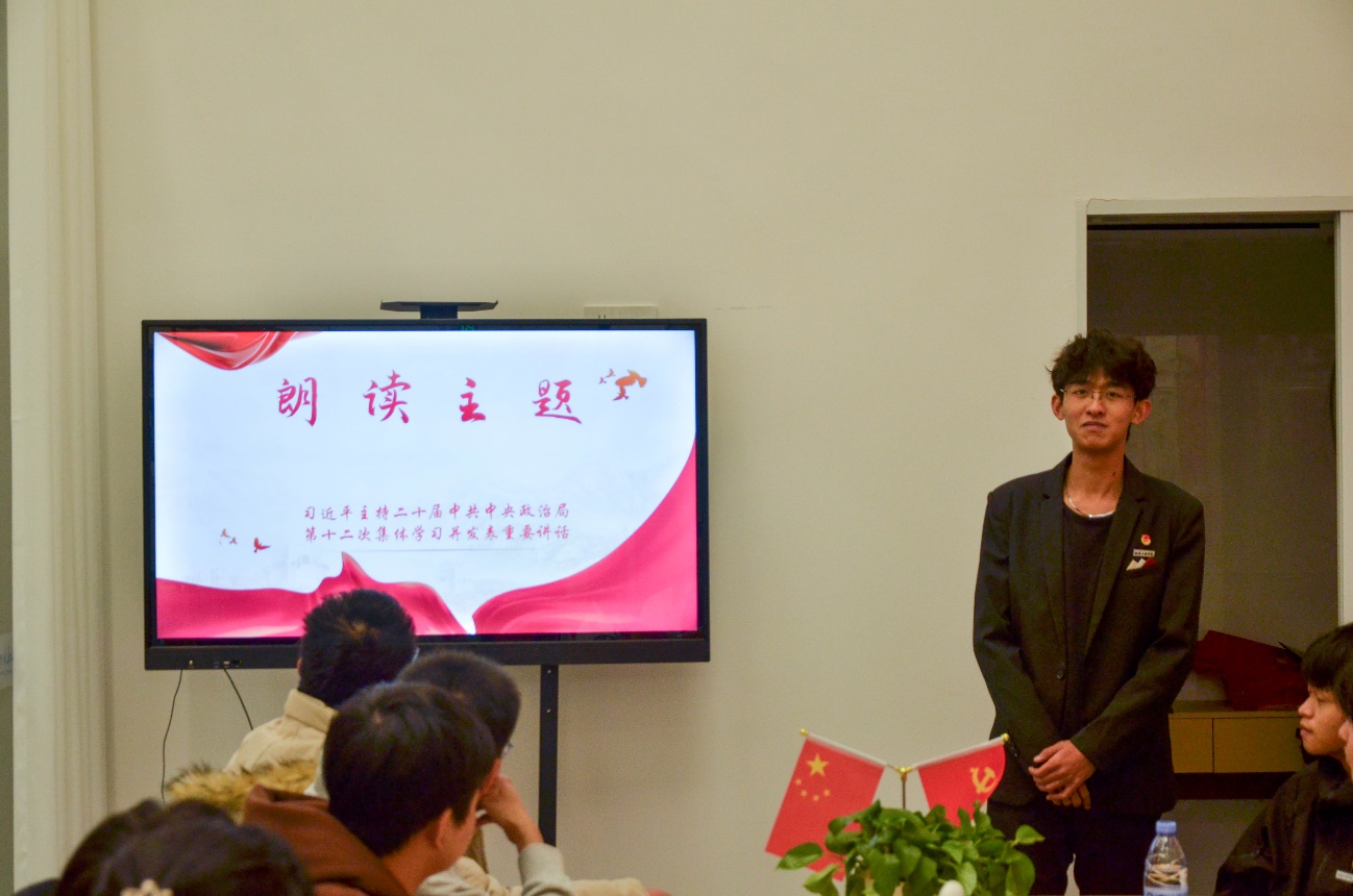分享會(huì)上,23級(jí)道路與橋梁工程技術(shù)1班班長(zhǎng)黃嘉駿,領(lǐng)學(xué)了習(xí)近平總書(shū)記在中共中央政治局第十二次集體學(xué)習(xí)時(shí)發(fā)表的重要講話(huà)“大力推動(dòng)我國(guó)新能源高質(zhì)量發(fā)展,為共建清潔美麗世界作出更大貢獻(xiàn)”。