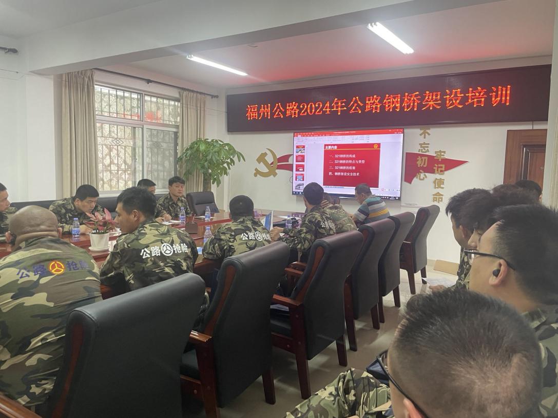 為切實提高公路搶險工作效率,培養(yǎng)鋼橋架設(shè)技術(shù)骨干,提高突發(fā)事件處置能力,進一步夯實鋼橋架設(shè)隊伍服務、應急、應戰(zhàn)一體化建設(shè),本次培訓分為理論學習和技能訓練。理論學習采用集中培訓的方式,系統(tǒng)學習應急人員自護自救常識、安全架設(shè)鋼橋要求和基本要領(lǐng)、應急搶險指揮信息設(shè)備操作常識等內(nèi)容;技能訓練采取集中學習、分組練習和綜合演練的組訓方式,組織戰(zhàn)備鋼橋架設(shè)的系統(tǒng)訓練和綜合演練。