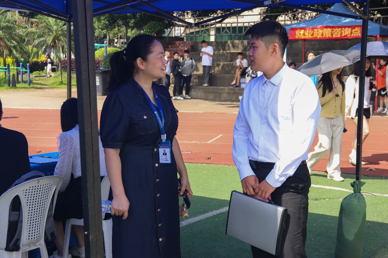 活動(dòng)現(xiàn)場(chǎng),學(xué)院領(lǐng)導(dǎo)班子積極與企業(yè)溝通交流,教研室專(zhuān)任教師、畢業(yè)班輔導(dǎo)員和班主任等均在場(chǎng)為學(xué)生答疑解惑,給學(xué)生提供建議和崗位推薦。