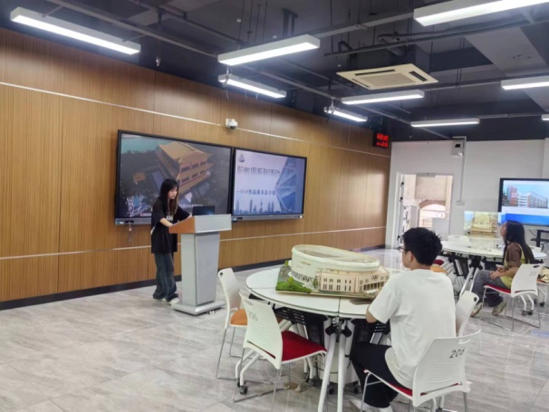 最后,社團(tuán)成員鄭詩(shī)煜同學(xué)帶來(lái)了“體藝樓”的虛實(shí)模型展示。這一作品將虛擬現(xiàn)實(shí)(VR)技術(shù)與BIM模型相結(jié)合,為觀眾提供了一種全新的建筑體驗(yàn)。通過(guò)VR頭盔,觀眾仿佛置身于建筑之中,可以直觀地感受到建筑的空間布局和設(shè)計(jì)細(xì)節(jié)。