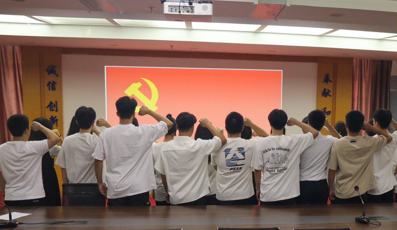 黨支部書記林森茂老師帶領(lǐng)畢業(yè)生黨員重溫入黨誓詞。全體黨員面向黨旗,莊嚴(yán)地舉起右拳,“我志愿加入中國共產(chǎn)黨,擁護(hù)黨的綱領(lǐng),遵守黨的章程,履行黨員義務(wù)……?!币痪渚涫脑~,強(qiáng)烈震撼著在場的每一位黨員,錚錚誓言,讓黨員們更加堅定入黨信念和為共產(chǎn)主義事業(yè)奮斗終身的決心,也深刻領(lǐng)悟到,要時刻用入黨誓詞檢視自我,不斷校正航向,方能行穩(wěn)致遠(yuǎn)。