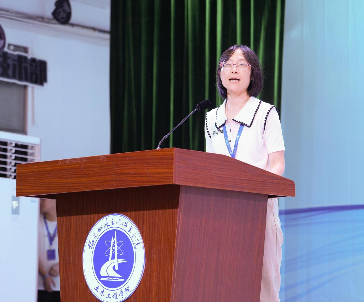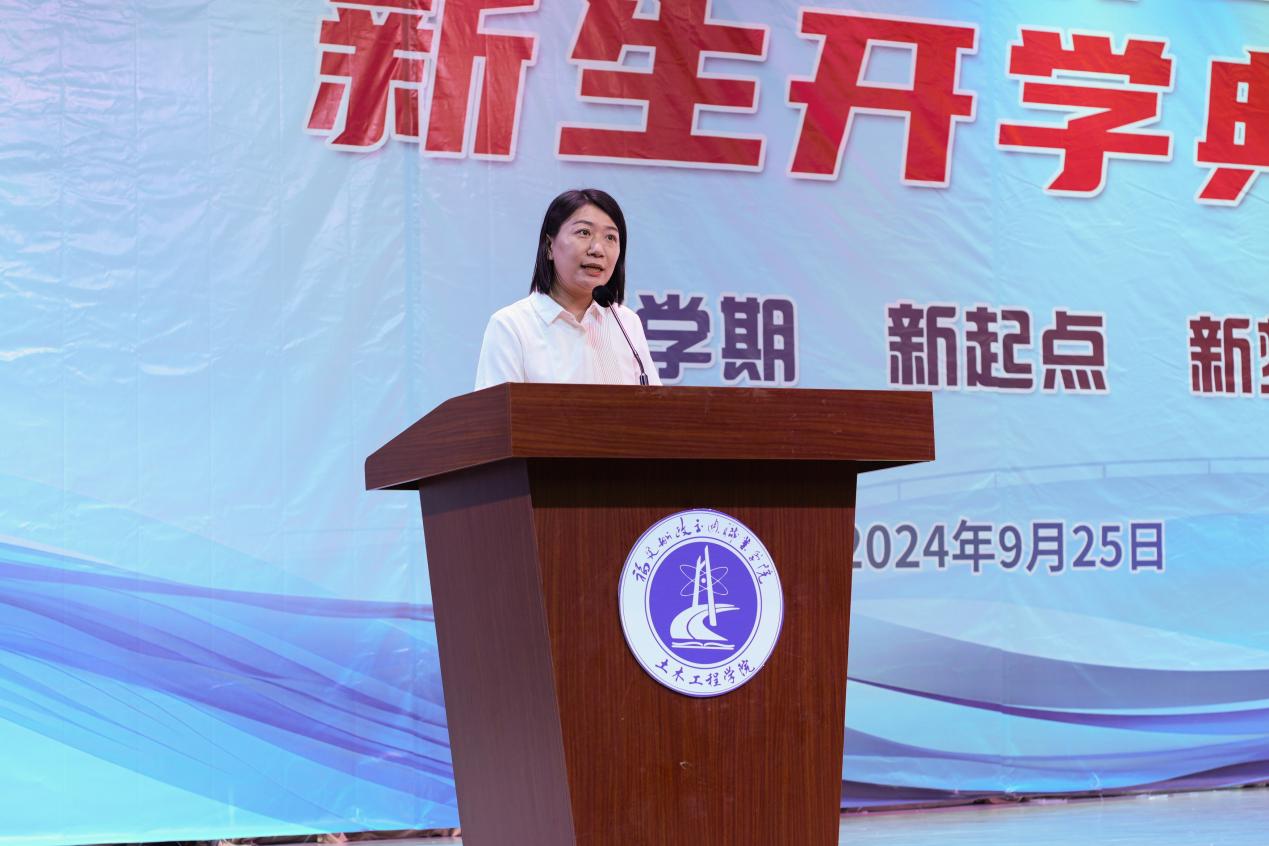施微丹老師作為教師代表上臺(tái)發(fā)言。她代表學(xué)院師生向每一位2024級(jí)新生表示最熱烈的歡迎與最誠(chéng)摯的祝愿,并提出了四項(xiàng)期望:盡快適應(yīng)大學(xué)、掌握一技之長(zhǎng)、積極面對(duì)學(xué)習(xí)生活難題以及堅(jiān)定面對(duì)挑戰(zhàn)。