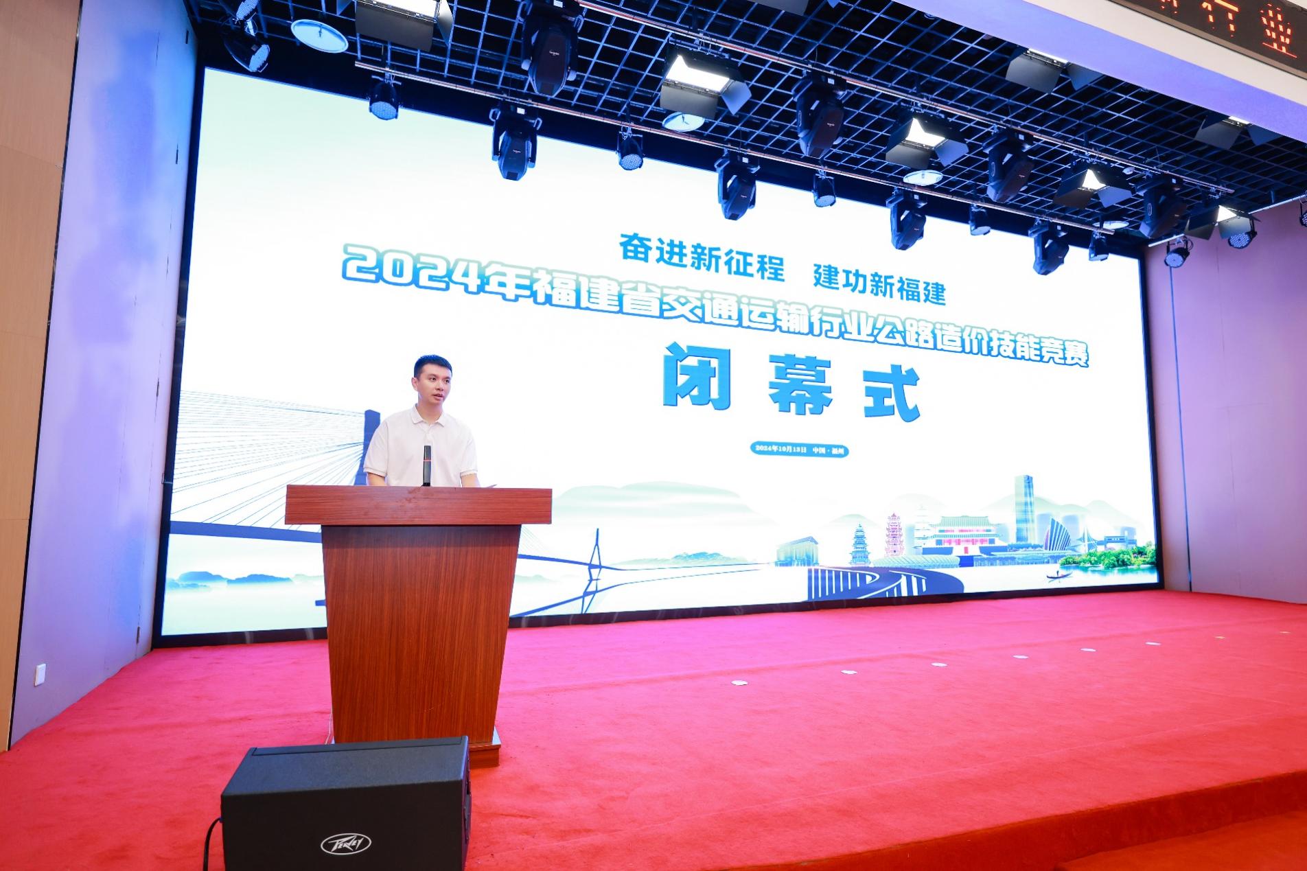 福建省交通運(yùn)輸廳產(chǎn)業(yè)工會副主席陳哲明發(fā)表總結(jié)講話,對獲獎選手表示祝賀,他強(qiáng)調(diào),本次公路造價技能競賽,是全國交通行業(yè)率先由省直部門聯(lián)合舉辦的省級造價技能競賽,一方面堅持應(yīng)用導(dǎo)向,真實還原學(xué)習(xí)或工作場景,發(fā)揮以賽促學(xué)、以賽促用的指揮棒作用,另一方面堅持拓展創(chuàng)新,通過競賽+培訓(xùn)和競賽+展示的方式,搭建了有益的交流提升平臺,促進(jìn)學(xué)、練、賽一體,深化產(chǎn)、學(xué)、研融合,促進(jìn)我省交通造價技能人才的加速培養(yǎng)。