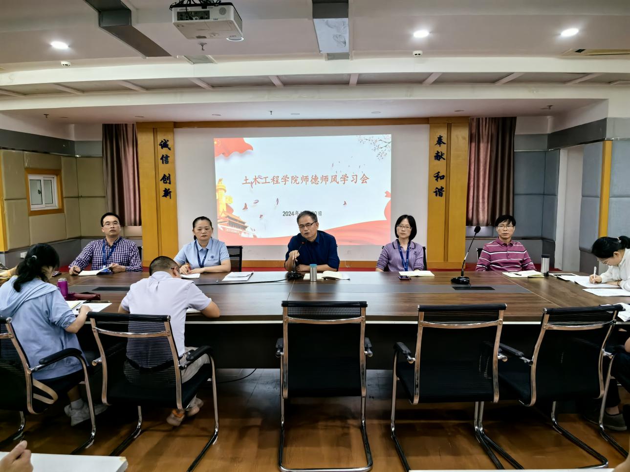 10月30日,土木工程學(xué)院在創(chuàng)新樓1007召開(kāi)師德師風(fēng)專(zhuān)題學(xué)習(xí)會(huì)。學(xué)院全體教職工參加本次會(huì)議,會(huì)議由黨總支書(shū)記高杰同志主持。