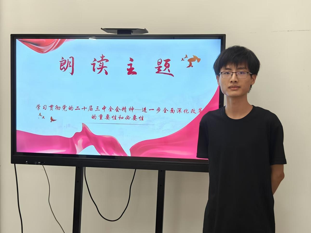 分享會上,2023級建筑裝飾工程技術2班副班長吳梓熠,領學朗讀了《中共中央關于進一步全面深化改革、推進中國式現(xiàn)代化的決定》(后文簡稱《決定》)“構建高水平社會主義經濟體制”部分。
