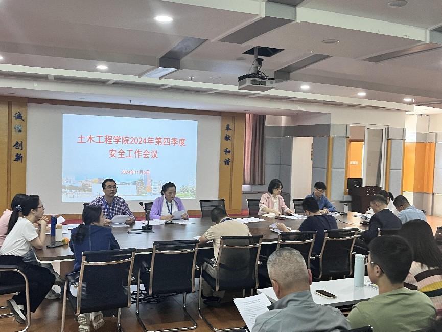 土木學(xué)院黃穎院長強(qiáng)調(diào),要堅持黨政同責(zé)、一崗雙責(zé)、齊抓共管,強(qiáng)化校園交通安全、意識形態(tài)安全、實(shí)驗(yàn)實(shí)訓(xùn)安全、實(shí)習(xí)安全和場館安全等重點(diǎn)領(lǐng)域的管控。特別指出,重點(diǎn)關(guān)注消防安全、用電安全、校外活動的安全管理。同時部署了學(xué)校第四季度安全穩(wěn)定工作,并提出要以高度的責(zé)任感和高效的行動力抓好安全工作。