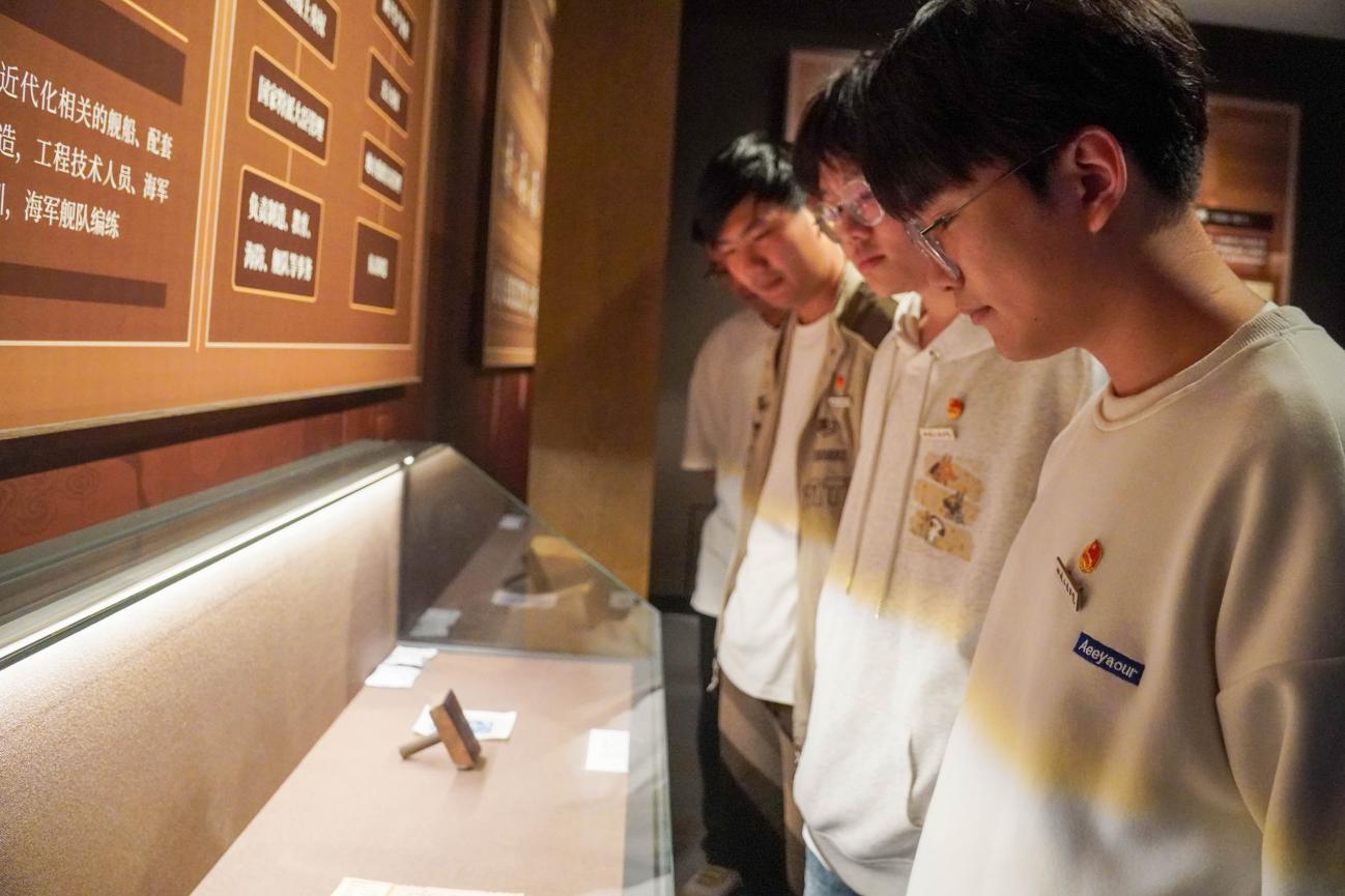 “一座船政博物館,半部海事圖強(qiáng)史?!敝袊?guó)船政文化博物館承載著船政彌足珍貴的歷史印記和精神內(nèi)涵。培訓(xùn)班學(xué)員跟隨著帶隊(duì)老師先后參觀了博物館的“千年變局、船政誕生、船政教育、船政制造、船政海軍和船政文化”等6個(gè)展區(qū),通過(guò)漆畫(huà)浮雕、文物展品、歷史照片、模型、裸眼3D展示等,深入了解中國(guó)船政先驅(qū)者在近代中國(guó)先進(jìn)科技、人才培育、海軍建設(shè)、西方經(jīng)典文化翻譯傳播等方面做出的積極探索和取得的輝煌成果,感嘆于船政人的創(chuàng)新精神和開(kāi)拓精神,從中深刻體悟“愛(ài)國(guó)、科學(xué)、創(chuàng)新、圖強(qiáng)”的船政精神。