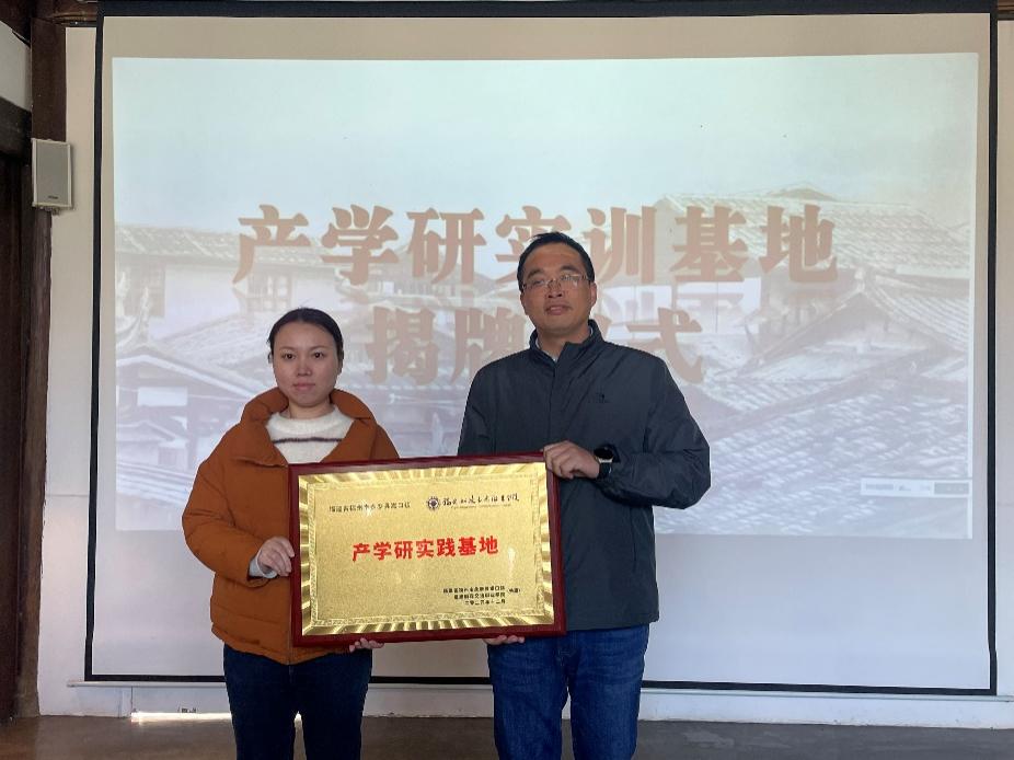 隨后,雙方舉行了簽約儀式與揭牌儀式。永泰縣嵩口鎮(zhèn)組織委員鄢美鳳與土木工程學(xué)院朱明栓副院長代表校地雙方簽署合作協(xié)議,并共同為“產(chǎn)學(xué)研實(shí)訓(xùn)基地”揭牌。