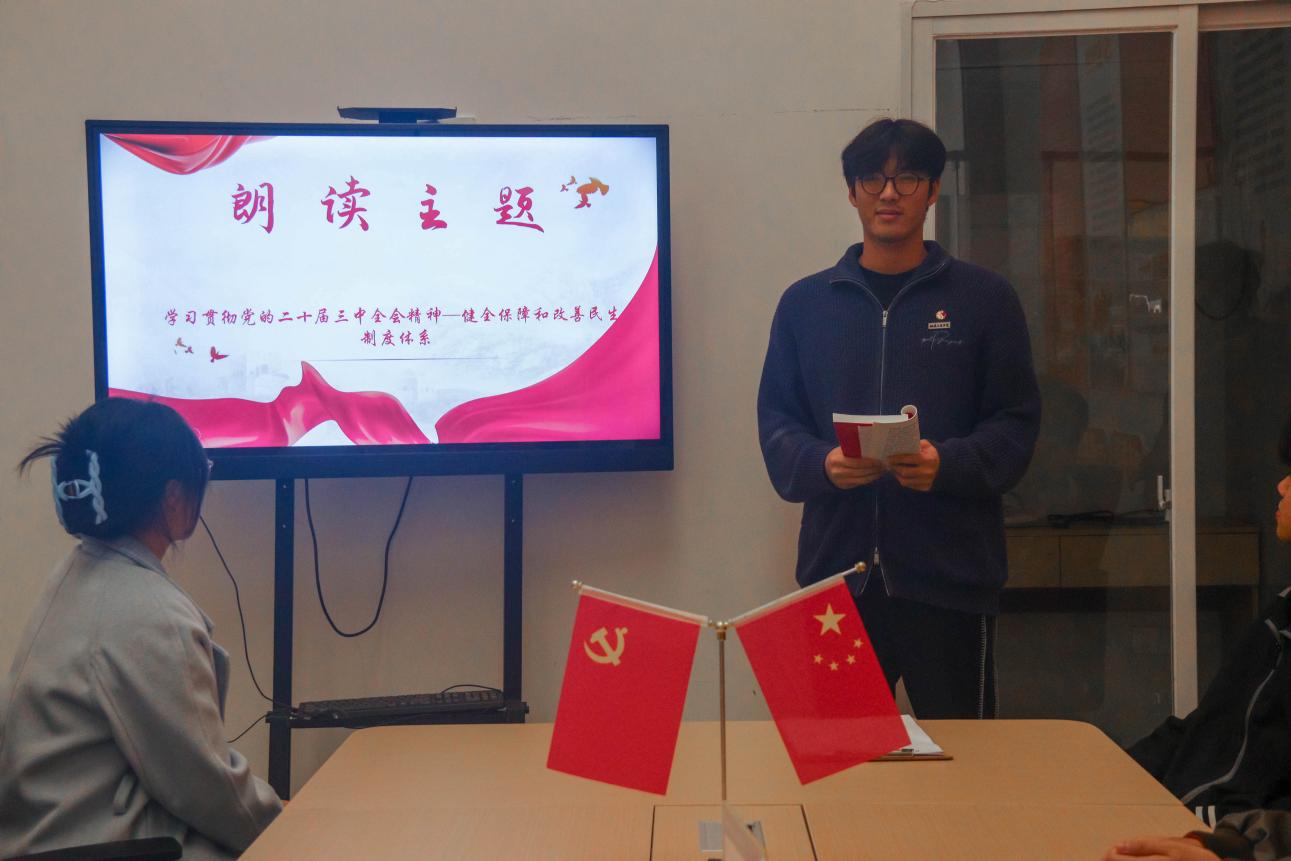 分享會(huì)上,2024級(jí)測(cè)繪地理信息技術(shù)2班班長(zhǎng)陳煒恒,領(lǐng)學(xué)朗讀了《中共中央關(guān)于進(jìn)一步全面深化改革、推進(jìn)中國(guó)式現(xiàn)代化的決定》(后文簡(jiǎn)稱(chēng)《決定》)“健全保障和改善民生制度體系”部分。