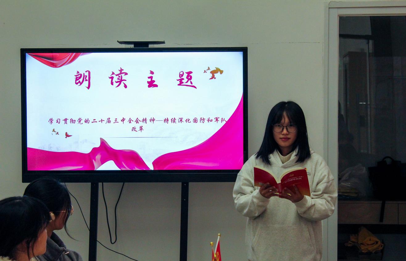 分享會(huì)上,2024級(jí)市政工程技術(shù)1班團(tuán)支書(shū)張鈺楓,領(lǐng)學(xué)朗讀了《中共中央關(guān)于進(jìn)一步全面深化改革、推進(jìn)中國(guó)式現(xiàn)代化的決定》(后文簡(jiǎn)稱《決定》)“持續(xù)深化國(guó)防和軍隊(duì)改革”部分。