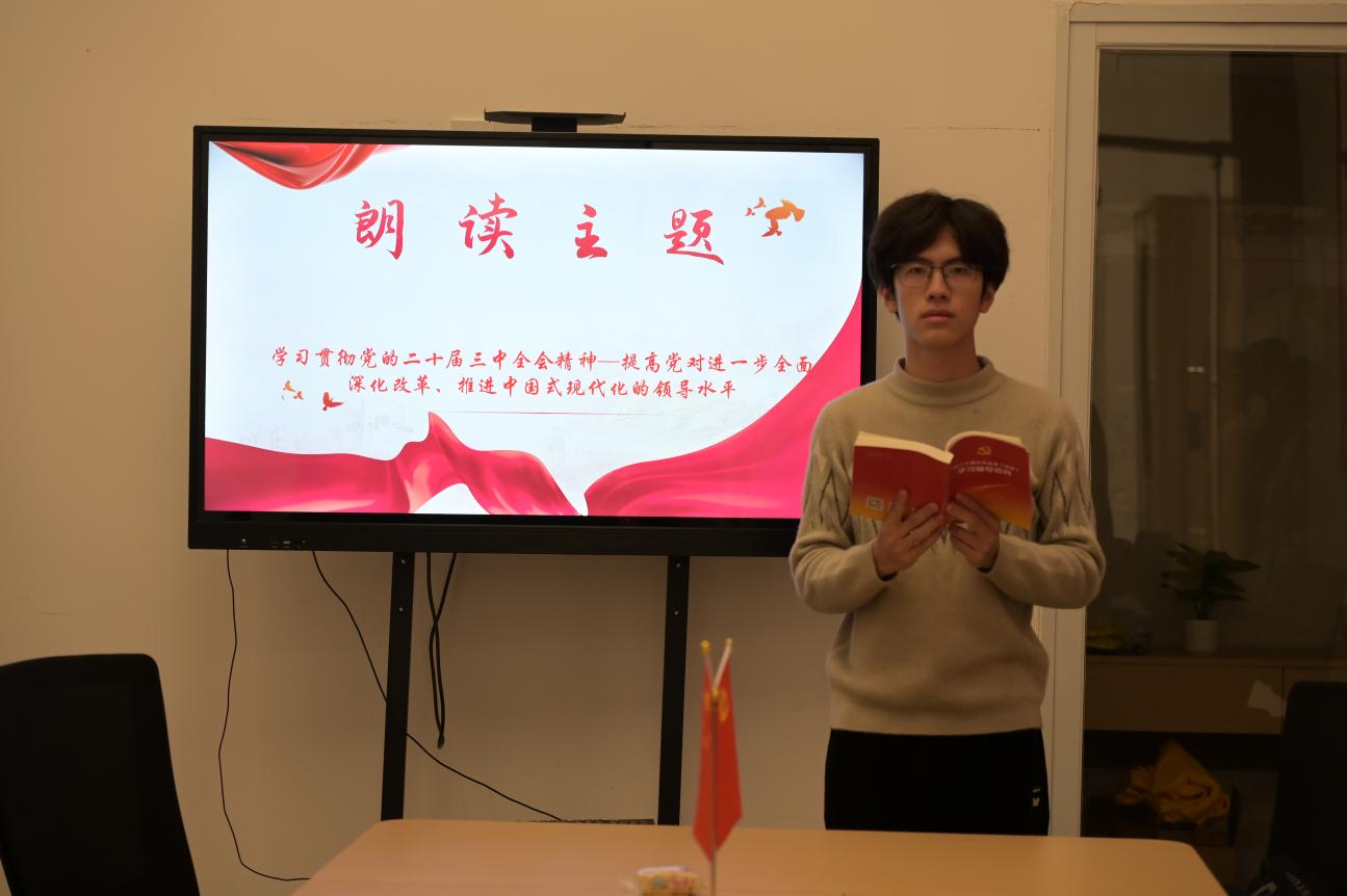 分享會上,2024級市政工程技術(shù)2班廖書偉,領(lǐng)學(xué)朗讀了《中共中央關(guān)于進(jìn)一步全面深化改革、推進(jìn)中國式現(xiàn)代化的決定》(后文簡稱《決定》)“提高黨對進(jìn)一步全面深化改革、推進(jìn)中國式現(xiàn)代化的領(lǐng)導(dǎo)水平”部分。
