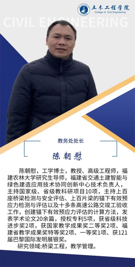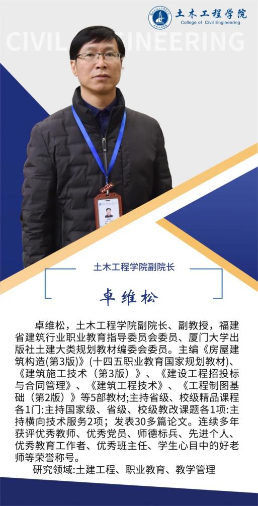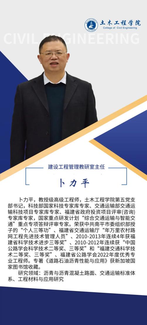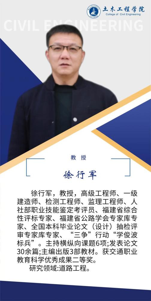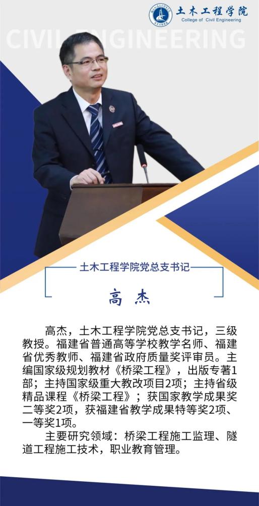 堅持黨建引領(lǐng),扎實推進師資隊伍建設(shè),土木工程學(xué)院黨總支是全省先進基層黨組織,第二支部為省級樣板支部,第四黨支部為省“雙帶頭人”教師黨支部書記工作室、全國黨建工作樣板支部,2024年入選全國高校“雙帶頭人”教師黨支部書記“強國行”專項行動團隊。土木工程學(xué)院現(xiàn)有專任教師90人,其中教授10人,副教授等副高職稱教師48人,具有博士學(xué)位教師10人,省級教學(xué)名師1人,省優(yōu)秀教師3人,省高職高專專業(yè)帶頭人1人,專任教師中具備雙師素質(zhì)的達到95%以上。另有一批專業(yè)領(lǐng)軍人才、大師名匠等組成的兼職教師隊伍,形成了高水平的“雙師雙能”教學(xué)團隊。在先進基層黨組織示范帶動下,道路與橋梁工程技術(shù)專業(yè)教學(xué)創(chuàng)新團隊入選第三批國家級職業(yè)教育教師創(chuàng)新團隊,團隊成員參與獲得國家級教學(xué)成果二等獎2項,福建省教學(xué)成果特等獎1項,一等獎3項,教師參加省級以上教學(xué)能力比賽獲一等獎3項,二等獎5項。