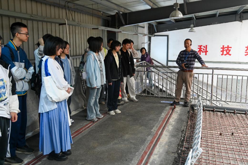 在橋梁工程研學(xué)模塊中,路橋?qū)I(yè)教師們通過“理論講解 + 現(xiàn)場(chǎng)實(shí)踐”的模式,幫助同學(xué)們深入了解橋梁的施工過程與特點(diǎn)。教師們先在教室內(nèi)講解不同橋梁的類型及其特點(diǎn),隨后帶領(lǐng)學(xué)生前往交通土建標(biāo)準(zhǔn)化施工產(chǎn)教融合實(shí)訓(xùn)基地,參觀路、橋、隧、基坑、邊坡等 1:1 實(shí)體模型,讓學(xué)生親身體驗(yàn)交通土建工程的施工藝。同時(shí),借助BIM + GIS管養(yǎng)平臺(tái)展示,學(xué)生們直觀了解了橋梁健康監(jiān)測(cè)系統(tǒng)運(yùn)作機(jī)理,熟悉了現(xiàn)代土木工程的信息化管理和智能化養(yǎng)護(hù)技術(shù)。