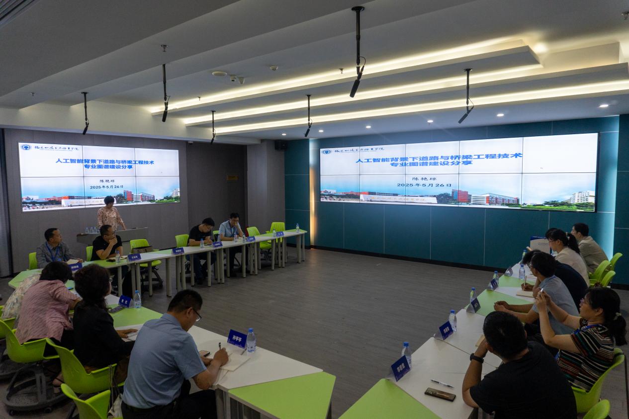 土木工程學(xué)院道路與橋梁工程技術(shù)專業(yè)教研室主任陳艷瓊教授作了題為《道路與橋梁工程技術(shù)專業(yè)圖譜建設(shè)的創(chuàng)新實(shí)踐》的專題報(bào)告,從“標(biāo)準(zhǔn)引領(lǐng)、技術(shù)賦能、產(chǎn)教協(xié)同”三個(gè)維度,詳細(xì)介紹了我院在專業(yè)圖譜建設(shè)方面的創(chuàng)新路徑、階段性成果及典型應(yīng)用案例,分享了“崗課賽證”綜合育人模式改革經(jīng)驗(yàn)。土木工程學(xué)院院長黃穎教授對(duì)專題報(bào)告進(jìn)行點(diǎn)評(píng)。
