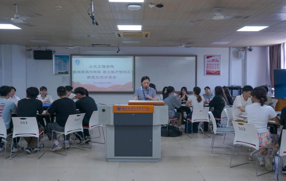為充分發(fā)揮國家獎學(xué)金獲得者的榜樣引領(lǐng)作用,搭建優(yōu)秀學(xué)子經(jīng)驗傳遞的橋梁,引導(dǎo)學(xué)生樹立全方位發(fā)展目標(biāo)。2025年6月9日,土木工程學(xué)院于福船園創(chuàng)新樓503教室開展“星耀國獎?wù)褜W(xué)路 薪火接力領(lǐng)學(xué)風(fēng)”國獎交流分享會。學(xué)院黨總支副書記任穎卿、全體輔導(dǎo)員、2025屆國家獎學(xué)金學(xué)生代表以及2023級、2024級學(xué)生代表參與本次分享會。