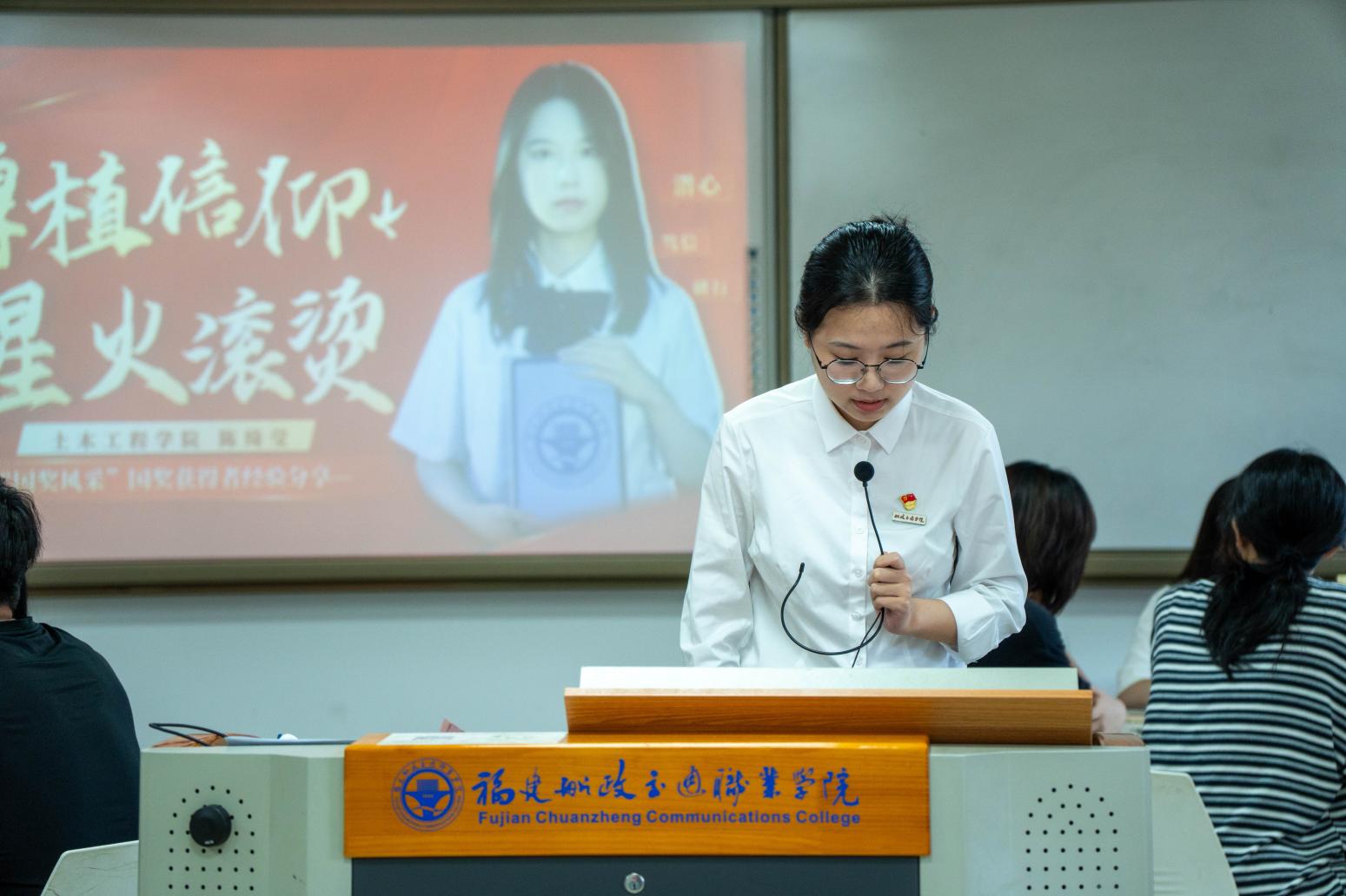 隨后,陳綺瑩、李楠、林詩鎧、陳耀東等國家獎學(xué)金獲得者代表,依次在學(xué)習(xí)心得、社會實踐、創(chuàng)新創(chuàng)業(yè)比賽等方面分享了自己的成長經(jīng)歷。