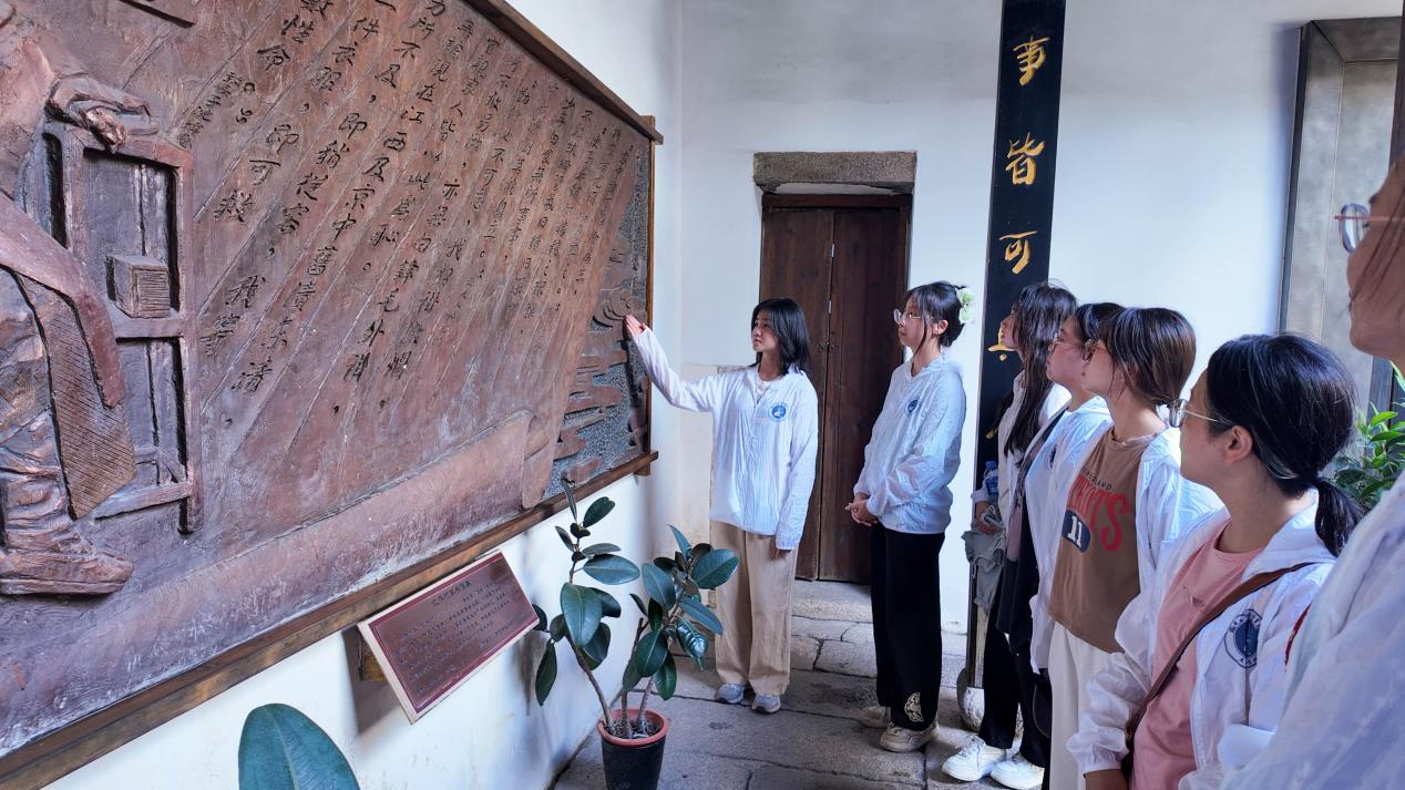 青磚灰瓦映歲月,雕梁畫棟藏溫情。實踐隊首站來到冰心故居,一座古樸院落靜靜矗立,天井中陽光灑落,時光仿佛在此定格。故居內(nèi),陳列著冰心生前的手稿、照片、生活用品,每一件物品都訴說著她不平凡的一生;泛黃書頁上的娟秀字跡,記錄著她對生活的感悟、對文學(xué)的熱愛;老照片中,她或執(zhí)筆沉思,或微笑凝望,盡顯文人風(fēng)骨。漫步在故居的各個角落,仿佛能看見年少的冰心在這里讀書、寫作,聆聽長輩們講述古老的故事,這里的一草一木、一磚一瓦,都浸潤著她的成長記憶。透過這些珍貴的展品和場景還原,我們深刻感受到冰心先生“有了愛就有了一切” 的博愛精神以及她用文字傳遞溫暖與希望的文學(xué)力量。