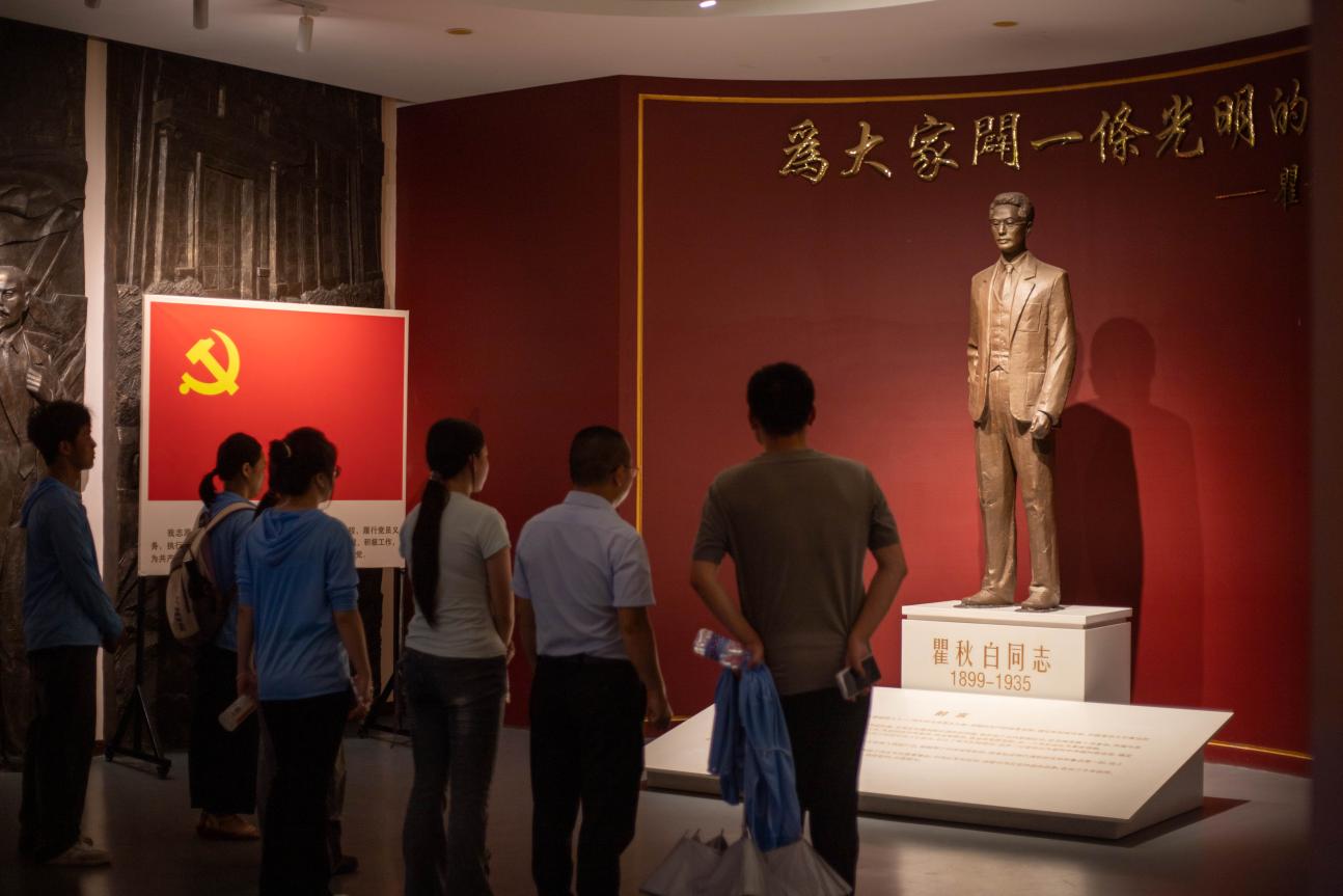 圖1:實踐團師生在瞿秋白紀(jì)念館瞻仰瞿秋白同志的雕像