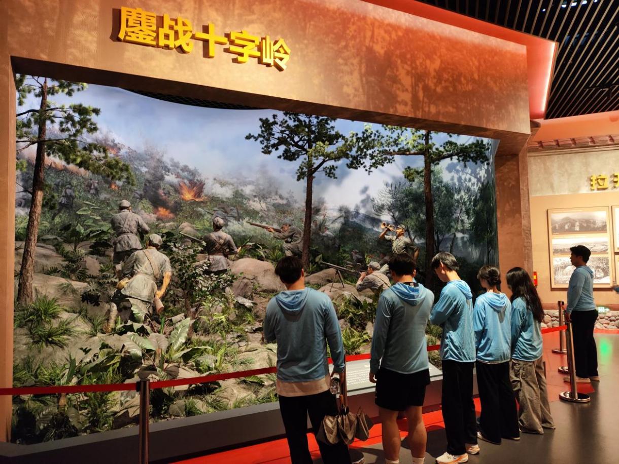 沉浸式學(xué)習(xí):成員們駐足于中央紅軍首次繳獲的“馬克思號(hào)”飛機(jī)模型下,觀看著1932年漳州戰(zhàn)役中紅軍智取敵機(jī)的故事;在《鏖戰(zhàn)十字嶺》雕塑前,感受紅軍天寶山?jīng)Q戰(zhàn)的英勇場景。