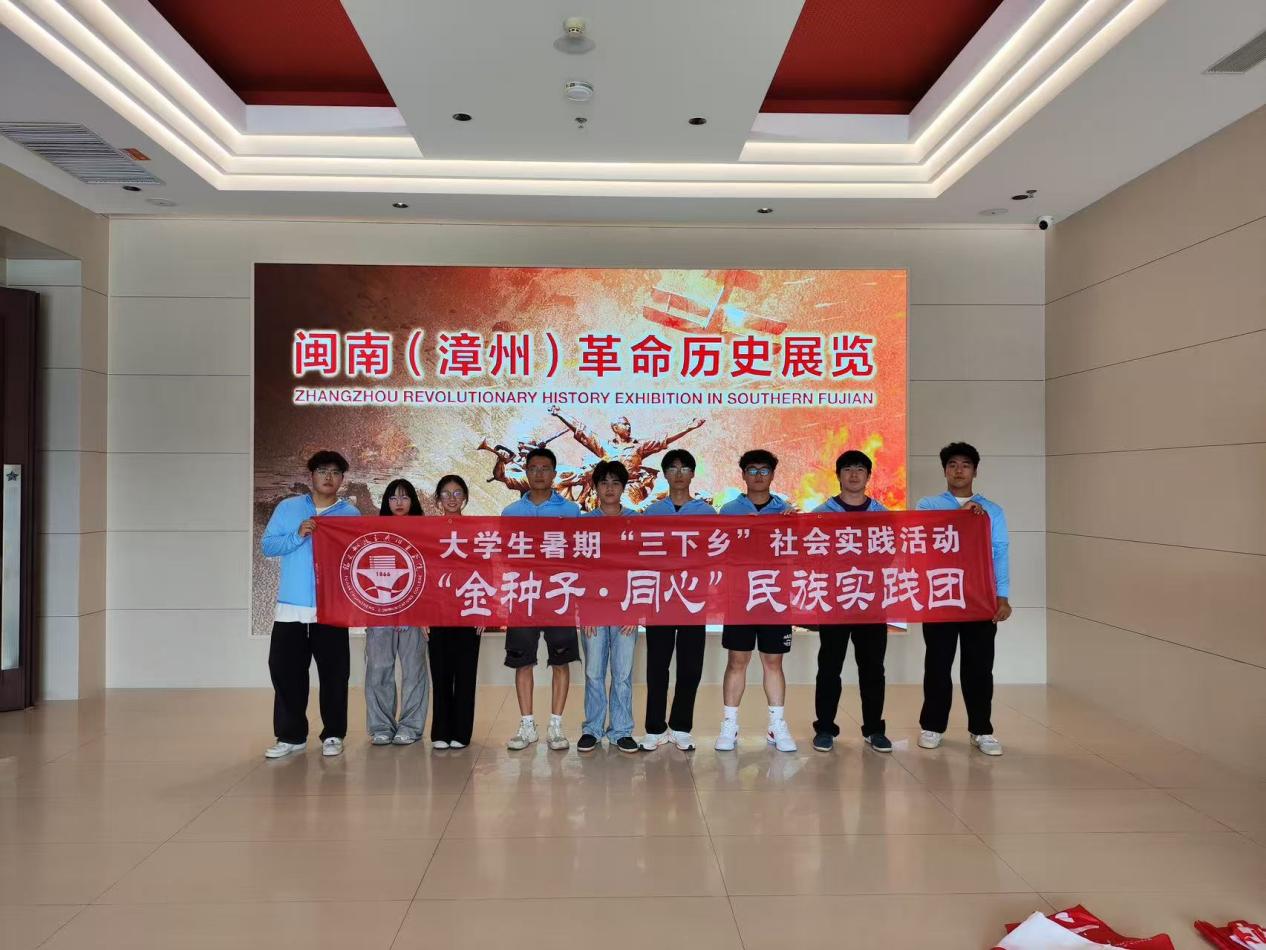 為進(jìn)一步深化民族團(tuán)結(jié)教育,樹立中華民族共同體意識(shí),增進(jìn)各民族間的交往交流交融,推動(dòng)各民族如同石榴籽般緊密相連,攜手團(tuán)結(jié)奮斗、共同繁榮發(fā)展。2025年8月13日至15日,土木工程學(xué)院“金種子·同心”民族實(shí)踐團(tuán)深入漳州革命歷史場館與少數(shù)民族村落開展以“根脈同心聚,家園共鑄魂”為主題的社會(huì)實(shí)踐。通過探訪閩南(漳州)革命歷史展覽館、龍海區(qū)龍海名人館、閩南文化展示交流中心及云霄縣坡兜畬族村,團(tuán)隊(duì)追溯紅色記憶、挖掘民族共融故事,鑄牢中華民族共同體意識(shí),為鄉(xiāng)村振興注入青春力量。