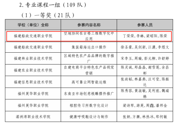 近日,2025年福建省職業(yè)院校技能大賽教學(xué)能力比賽(含中職思政)現(xiàn)場決賽在漳州衛(wèi)生職業(yè)學(xué)院落下帷幕。本次比賽充分體現(xiàn)了教師是落實立德樹人根本任務(wù)的主要角色,充分展現(xiàn)了教師專業(yè)技能、教學(xué)本領(lǐng)、數(shù)字素養(yǎng)、綜合育人和自主發(fā)展的五大能力。本次比賽全省406隊教師團隊參賽,其中中職組170隊,高職組236隊。經(jīng)過網(wǎng)絡(luò)初評和現(xiàn)場決賽的激烈角逐,我院三支教師團隊脫穎而出:丁榮榮、李琳、梁昭陽、陳榮四位教師完成的《空地協(xié)同在古塔三維數(shù)字化中應(yīng)用》項目獲得高職專業(yè)課程一組一等獎1項;鐘婉婷、魏天云、雷芳芳、米偉亞四位教師完成的《市政排水管道數(shù)字化施工》項目,榮獲該組別三等獎1項;何璐薇、張凈霞、曾惠珍、曾錦秀四位教師完成的《橋梁工程經(jīng)常性檢測》項目獲得高職專業(yè)課程二組二等獎1項;
