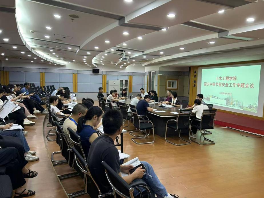 為加強(qiáng)學(xué)院安全管理,保障國(guó)慶中秋雙節(jié)期間校園安全穩(wěn)定,土木工程學(xué)院于2025年9月29日召開第三季度安全工作會(huì)議。會(huì)議由學(xué)院相關(guān)負(fù)責(zé)人主持,學(xué)院領(lǐng)導(dǎo)班子成員、各教研室主任、辦公室人員、實(shí)訓(xùn)中心成員及全體輔導(dǎo)員參加會(huì)議。