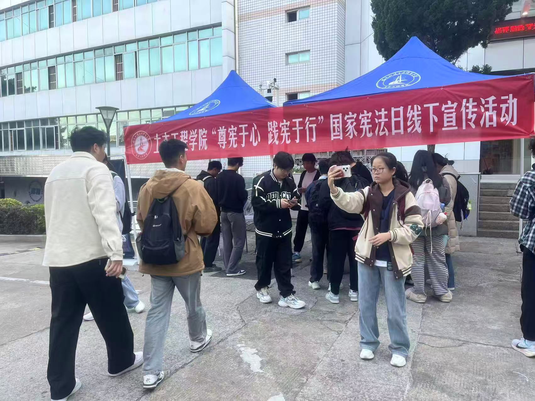 為深入學(xué)習(xí)宣傳貫徹習(xí)近平法治思想,推動憲法精神在青少年心中落地生根。2025年12月4日,在第十二個國家憲法日來臨之際,土木工程學(xué)院于福航園“一站式”學(xué)生社區(qū)服務(wù)中心開展“尊憲于心 踐憲于行”國家憲法日線下宣傳活動。