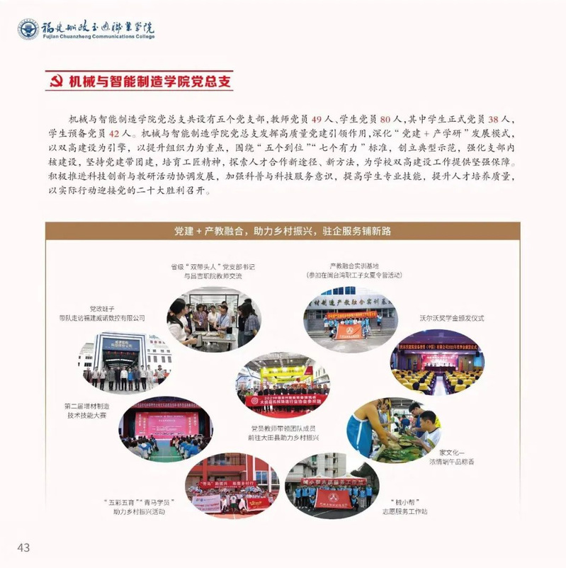 十九大以來(lái),福建船政交通職業(yè)學(xué)院堅(jiān)持以習(xí)近平新時(shí)代中國(guó)特色社會(huì)主義思想為指導(dǎo),堅(jiān)持社會(huì)主義辦學(xué)方向,深入貫徹黨的十九大和十九屆歷次全會(huì)精神,堅(jiān)守“為黨育人、為國(guó)育才”的初心和使命,慎終如始推進(jìn)學(xué)校黨的政治建設(shè)、思想建設(shè)、組織建設(shè)、作風(fēng)建設(shè)、紀(jì)律建設(shè)、制度建設(shè),黨的組織體系和學(xué)校治理體系相得益彰,黨建引領(lǐng)推動(dòng)創(chuàng)新船政、質(zhì)量船政、文化船政協(xié)奏齊鳴,政治生態(tài)、學(xué)術(shù)生態(tài)、文化生態(tài)持續(xù)向好,辦學(xué)效率、辦學(xué)效能、辦學(xué)效益顯著提升!