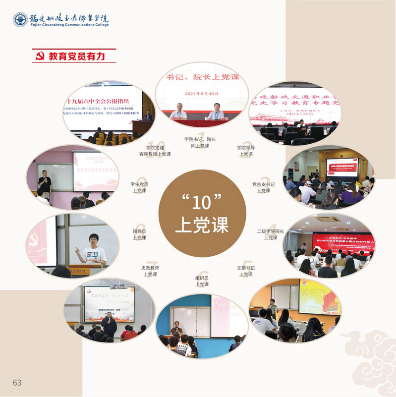 教育黨員有力 今年是黨的二十大召開(kāi)之年,是學(xué)校深化綜合改革、加快“雙高”建設(shè)的關(guān)鍵年,是續(xù)寫過(guò)去5年工作、回首新時(shí)代10年變革的轉(zhuǎn)折年。站在新的歷史起點(diǎn)上,船政交通人將始終沿著習(xí)近平總書(shū)記親自為福建擘畫(huà)的最美山水圖、沿革船政先賢留下的文化瑰寶、延續(xù)一代代船政交通人接續(xù)奮斗的精神,以飽滿的精神、昂揚(yáng)的斗志、奮進(jìn)的狀態(tài),開(kāi)啟建設(shè)中國(guó)特色高水平高職學(xué)校的新征程,以優(yōu)異成績(jī)慶祝黨的二十大勝利召開(kāi)!