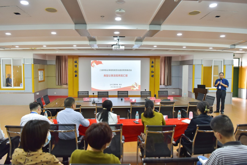 下午,在土木工程學(xué)院召開了現(xiàn)場推進(jìn)會,校領(lǐng)導(dǎo)、相關(guān)職能部門、二級學(xué)院班子全體成員參會?,F(xiàn)場推進(jìn)會上,土木工程學(xué)院黨總支書記高杰就黨總支會議、黨政聯(lián)席會議召開情況向與會人員做了匯報,隨后,大家一同觀摩了土木工程學(xué)院黨總支會議、黨政聯(lián)席會議現(xiàn)場會。
