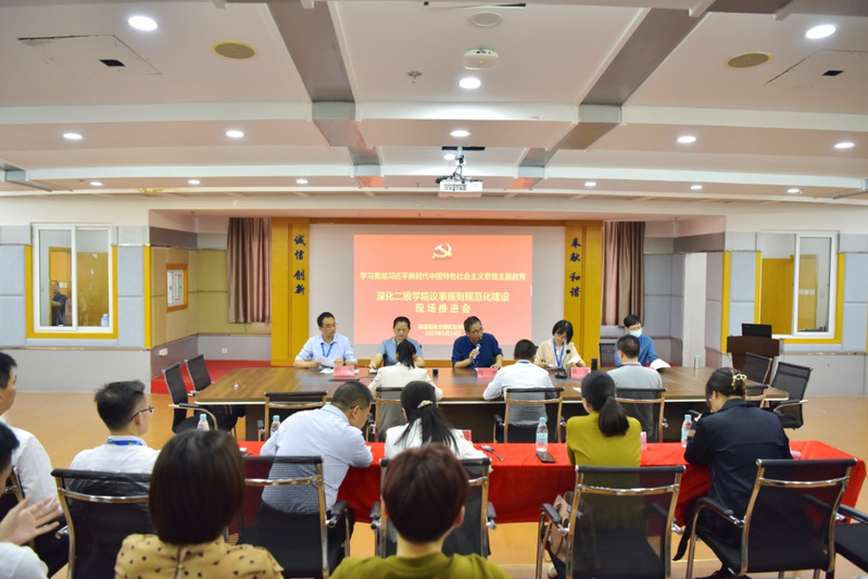 為進(jìn)一步提高學(xué)校二級學(xué)院治理能力和水平,持續(xù)推進(jìn)“三重一大”事項決策的民主化、科學(xué)化和規(guī)范化,按照主題教育“把理論學(xué)習(xí)、調(diào)查研究、推動發(fā)展、檢視整改、建章立制貫通起來”的要求,對查擺出的問題堅持立查立改, 5月14日,學(xué)校開展了深化二級學(xué)院議事規(guī)則規(guī)范化建設(shè)專項檢查會、現(xiàn)場推進(jìn)會及專題輔導(dǎo)報告會等。
