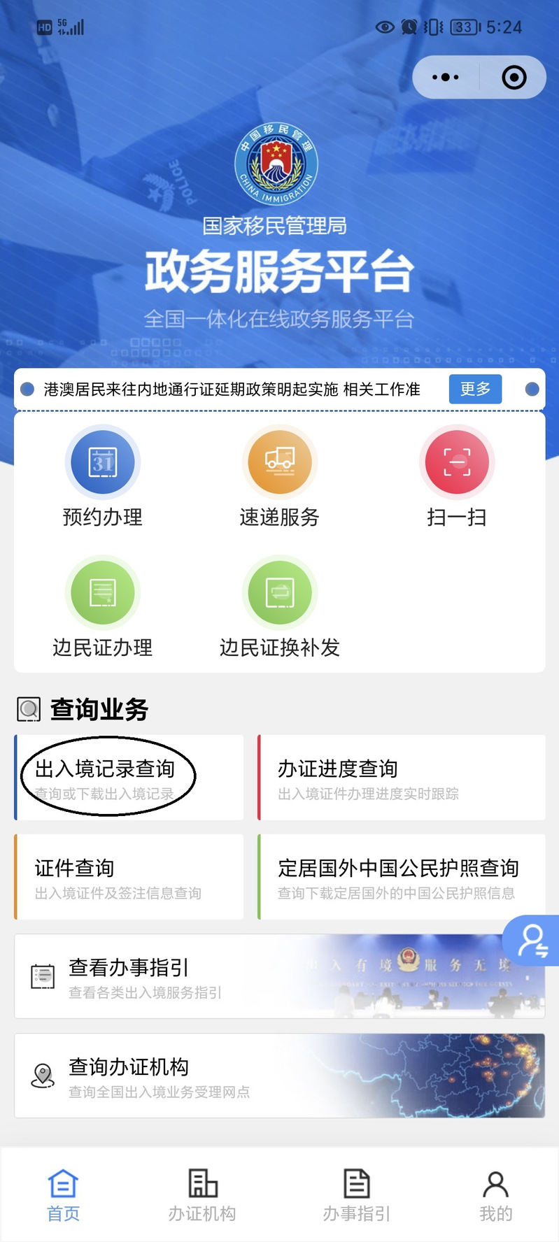 在首頁(yè)點(diǎn)擊“出入境記錄查詢”,可查本人出入境記錄。
