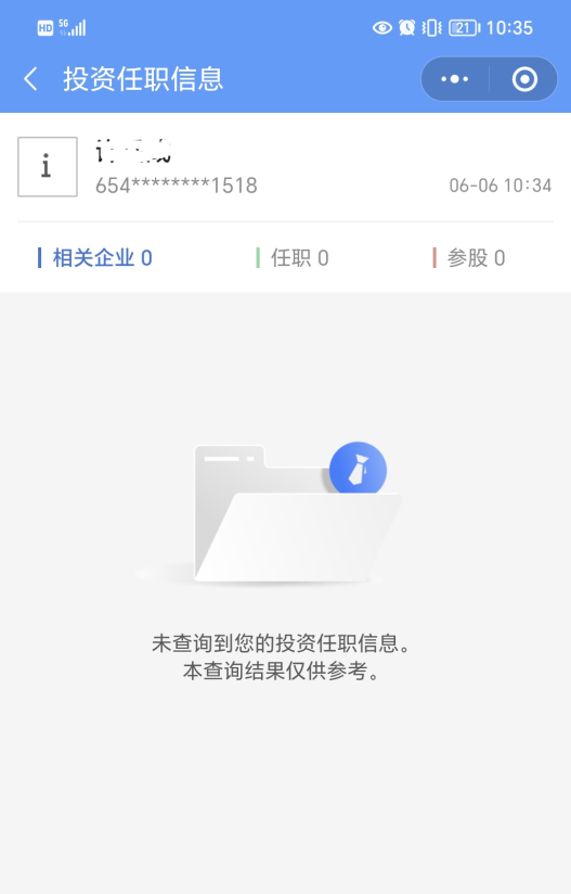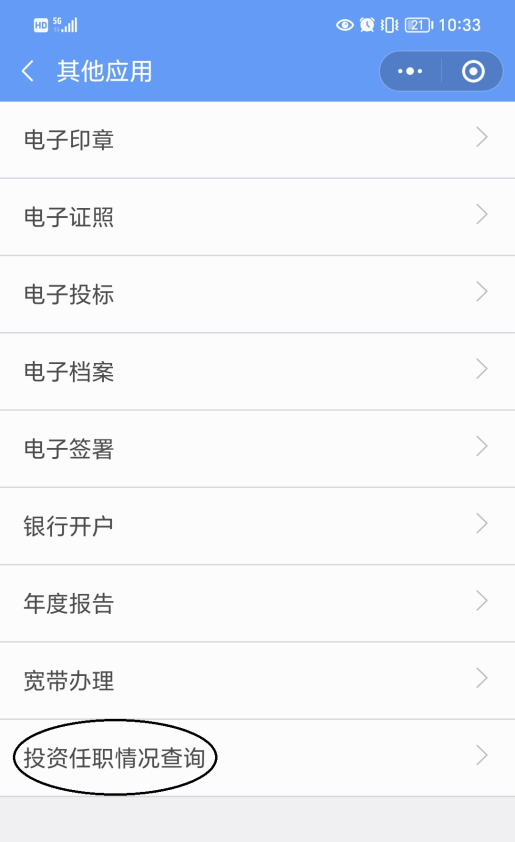 第三步 點(diǎn)擊“零錢(qián)通”,可進(jìn)入零錢(qián)通詳情頁(yè)。 第四步 點(diǎn)擊右上角“···”,選擇“基金詳情”進(jìn)入基金詳情頁(yè)。 第五步 點(diǎn)擊基金名稱(chēng),可查看基金代碼等信息。 04 投資型保險(xiǎn)查詢 第一步 掃碼下載“金事通”APP。 第二步 進(jìn)入“金事通”APP后,點(diǎn)擊右下角“個(gè)人中心”。 第三步 注冊(cè)登錄“金事通”APP。 第四步 授權(quán)登錄后,可在首頁(yè)“投資型保險(xiǎn)”模塊查詢本人持有投資型保險(xiǎn)情況。 第五步 進(jìn)入投資型保險(xiǎn)查詢界面,點(diǎn)擊右下角“查看表單”查看投資型保險(xiǎn)表單詳情,表單詳情格式與“17.本人、配偶、共同生活的子女投資或者以其他方式持有投資型保險(xiǎn)的情況”欄格式一致。 05 投資企業(yè)或擔(dān)任高級(jí)職務(wù)查詢 第一步 微信掃碼進(jìn)入“電子營(yíng)業(yè)執(zhí)照”小程序。 第二步 進(jìn)入后彈出窗口選擇“管理我的執(zhí)照”欄目下的“其他應(yīng)用”。 第三步 進(jìn)入其他應(yīng)用頁(yè)面,選擇“投資任職情況查詢”,按照查詢須知,在早上6點(diǎn)到晚上8點(diǎn)時(shí)間段內(nèi)進(jìn)行查詢。 第四步 進(jìn)入實(shí)名認(rèn)證環(huán)節(jié),輸入本人姓名、身份證號(hào),點(diǎn)擊確認(rèn)。 第五步 使用人臉識(shí)別功能驗(yàn)證本人身份,按照軟件操作識(shí)別身份。 第六步 查看投資任職信息,如有登記信息,則會(huì)顯示相應(yīng)公司名稱(chēng),可點(diǎn)擊公司名稱(chēng)查看相應(yīng)的公司信息。 注意: 配偶、子女及其配偶的從業(yè)、投資企業(yè)情況,可到任職或投資的企業(yè)查詢,或使用“企查查”、“天眼查”、“國(guó)家企業(yè)信用公示系統(tǒng)”(www.gsxt.gov.cn網(wǎng)站)、“國(guó)家企業(yè)信用公示系統(tǒng)”微信小程序等企業(yè)信息查詢APP輔助查詢。 法律服務(wù)機(jī)構(gòu)查詢 登錄“全國(guó)律師誠(chéng)信信息公示平臺(tái)”(https://credit.acla.org.cn/),可查詢律師事務(wù)所和律師相關(guān)信息。 07 投資私募股權(quán)投資基金查詢 第一步 登錄“中國(guó)證券投資基金業(yè)協(xié)會(huì)”官網(wǎng),選擇頁(yè)面中的“私募基金業(yè)務(wù)”。(官網(wǎng):https://www.amac.org.cn) 第二步 進(jìn)入后下拉頁(yè)面,選擇“信息公示”,進(jìn)行相關(guān)查詢。 (轉(zhuǎn)載:智能組工)