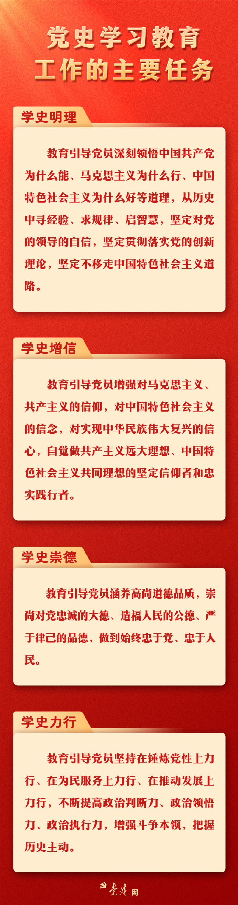 開展黨史學習教育,充分發(fā)揮黨史以史鑒今、資政育人的作用,是黨和國家工作大局中的一件十分重要的工作。近日,中共中央印發(fā)了《黨史學習教育工作條例》(以下簡稱《條例》)。《條例》的制定和實施,對于推動黨史學習教育常態(tài)化長效化,推動全黨全社會學好黨史、用好黨史,從黨的歷史中汲取智慧和力量,做到學史明理、學史增信、學史崇德、學史力行,具有重要意義。黨史學習教育工作的主要任務(wù)有哪些,快來一圖學習!