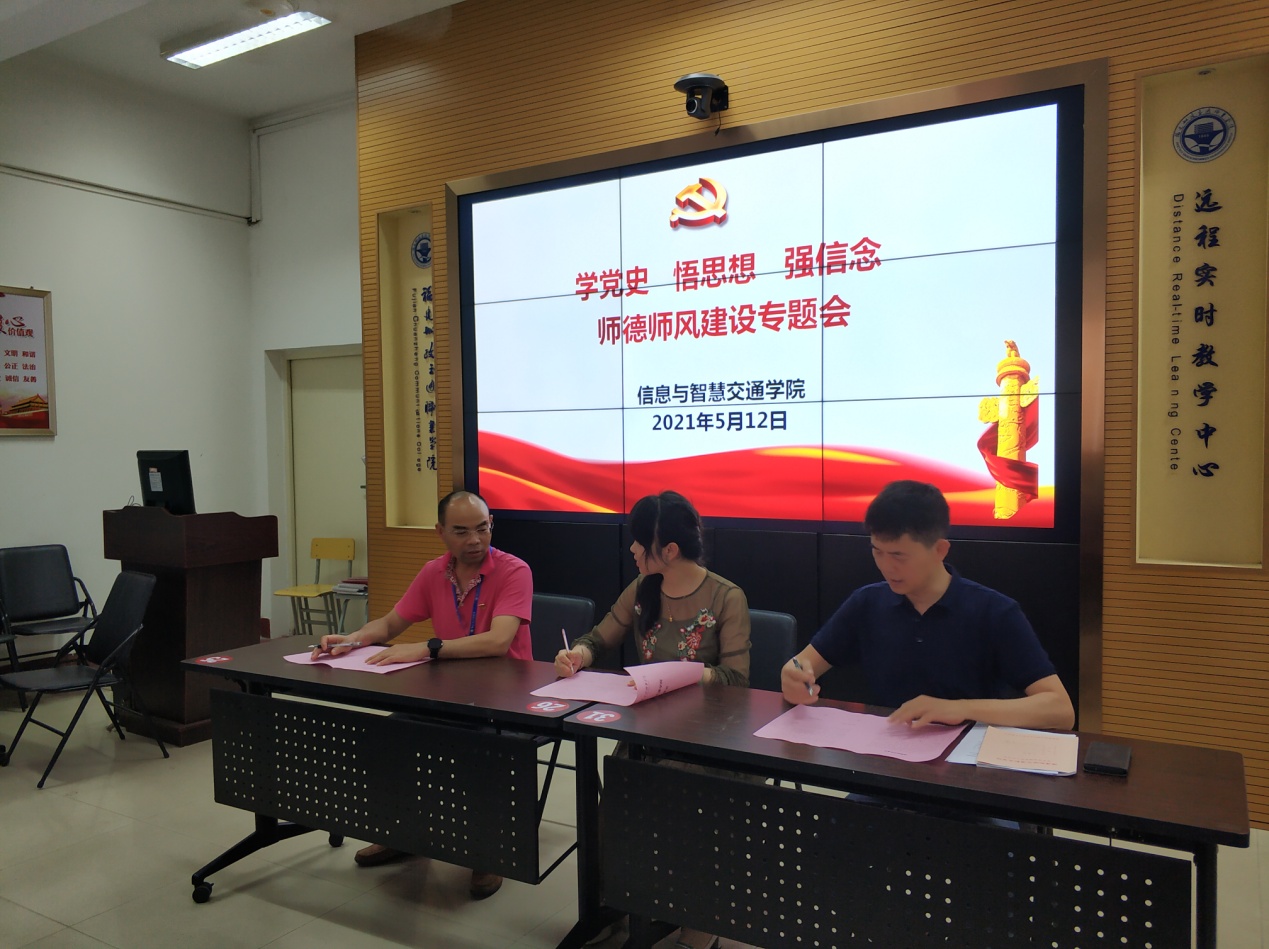會上,學(xué)院總支書記許友孝帶領(lǐng)全體老師們認(rèn)真閱讀了《信息與智慧交通學(xué)院師德師風(fēng)承諾書》的各項(xiàng)內(nèi)容,強(qiáng)調(diào)堅(jiān)決不觸碰師德紅線,做一個(gè)遵守紀(jì)律的老師。最后每位老師鄭重地在《信息與智慧交通學(xué)院師德師風(fēng)承諾書》上簽下了自己的名字。
