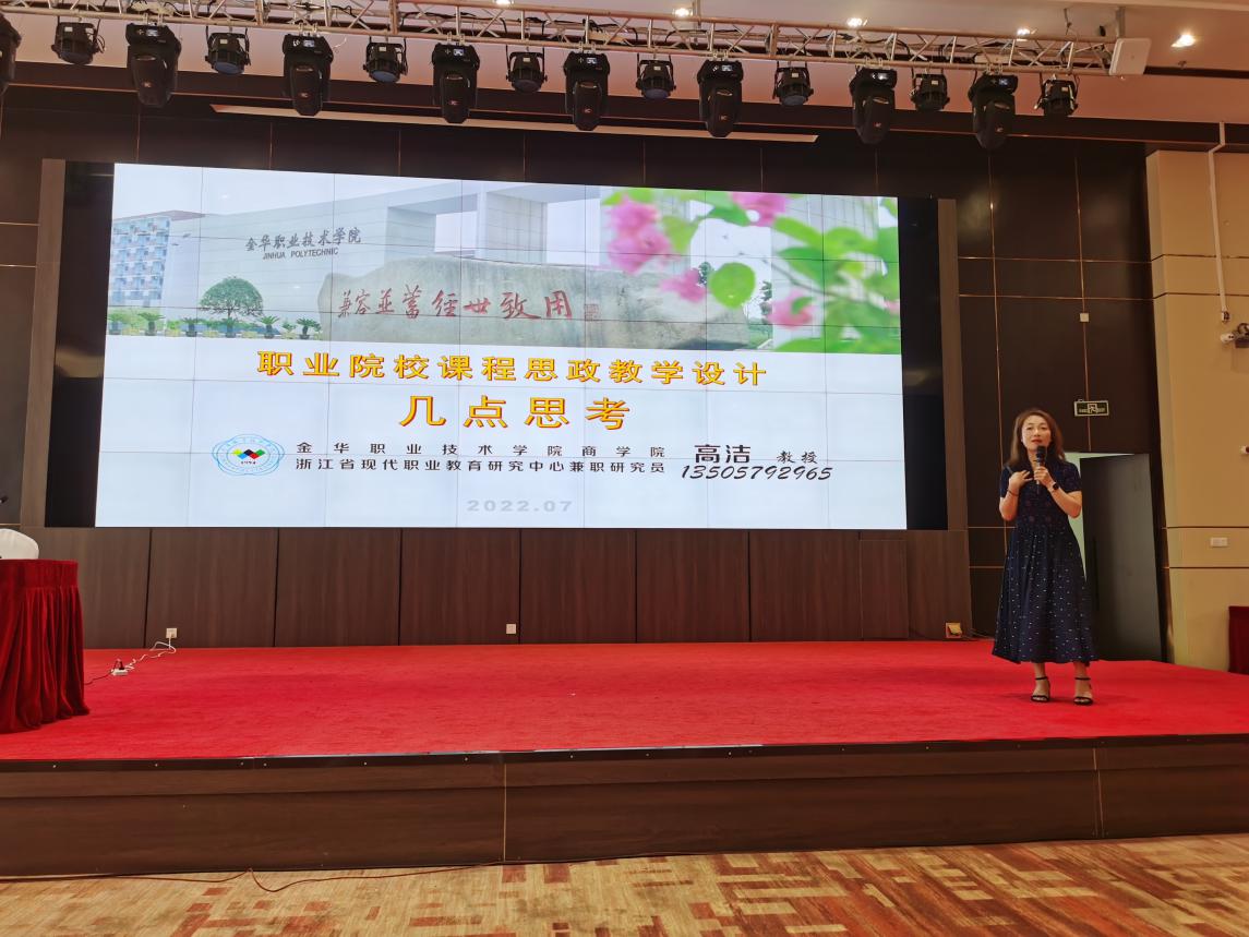 金華職業(yè)技術(shù)學(xué)院商學(xué)院副院長高潔以《職業(yè)院校課程思政教學(xué)設(shè)計(jì)幾點(diǎn)思考》為題,從重視課程思政的思政味、守牢課程思政的職業(yè)味、做實(shí)課程思政的特色三個(gè)方面闡釋了當(dāng)下課程思政的意義、功能、目標(biāo)以及構(gòu)建路徑和育人策略等內(nèi)容,對我校推進(jìn)課程思政建設(shè)具有指導(dǎo)意義。