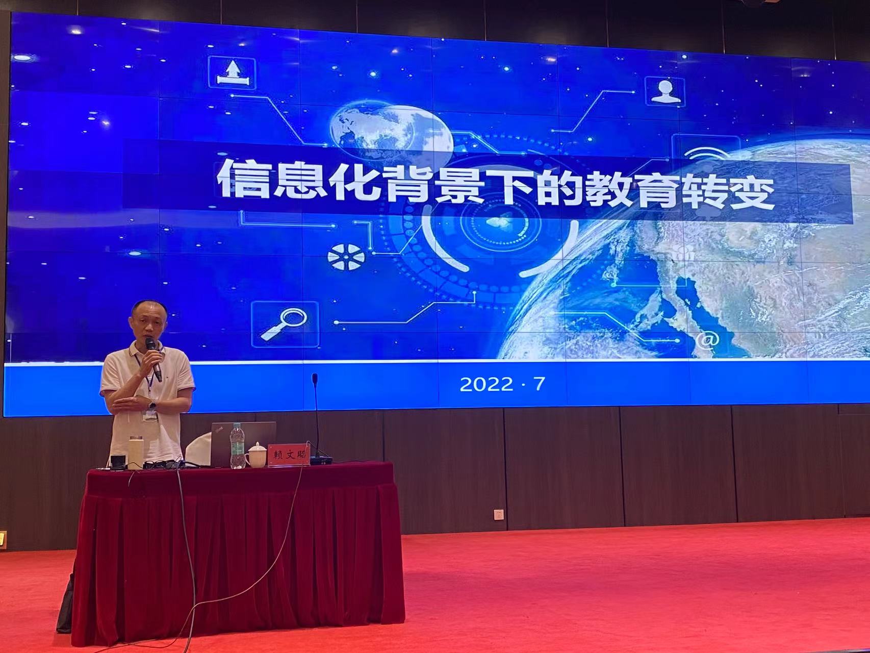省電教館職教部主任,高級(jí)教師,省優(yōu)秀教師,教育部信息化教學(xué)指導(dǎo)委員會(huì)首屆賽委會(huì)委員賴文昭作了題為《信息化環(huán)境下的教學(xué)轉(zhuǎn)變》的專題講座,介紹了信息技術(shù)應(yīng)用能力提升工程2.0,從信息技術(shù)給教育帶來什么、信息化環(huán)境下轉(zhuǎn)變什么、信息化環(huán)境下我們做什么三個(gè)方面為信息技術(shù)教育改革指明了方向。