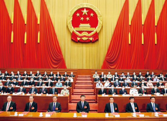 2020年5月28日,第十三屆全國人民代表大會第三次會議在北京人民大會堂閉幕。黨和國家領(lǐng)導(dǎo)人習(xí)近平、李克強(qiáng)、汪洋、王滬寧、趙樂際、韓正、王岐山等在主席臺就座,栗戰(zhàn)書主持閉幕會并發(fā)表講話。 新華社記者 鞠鵬/攝