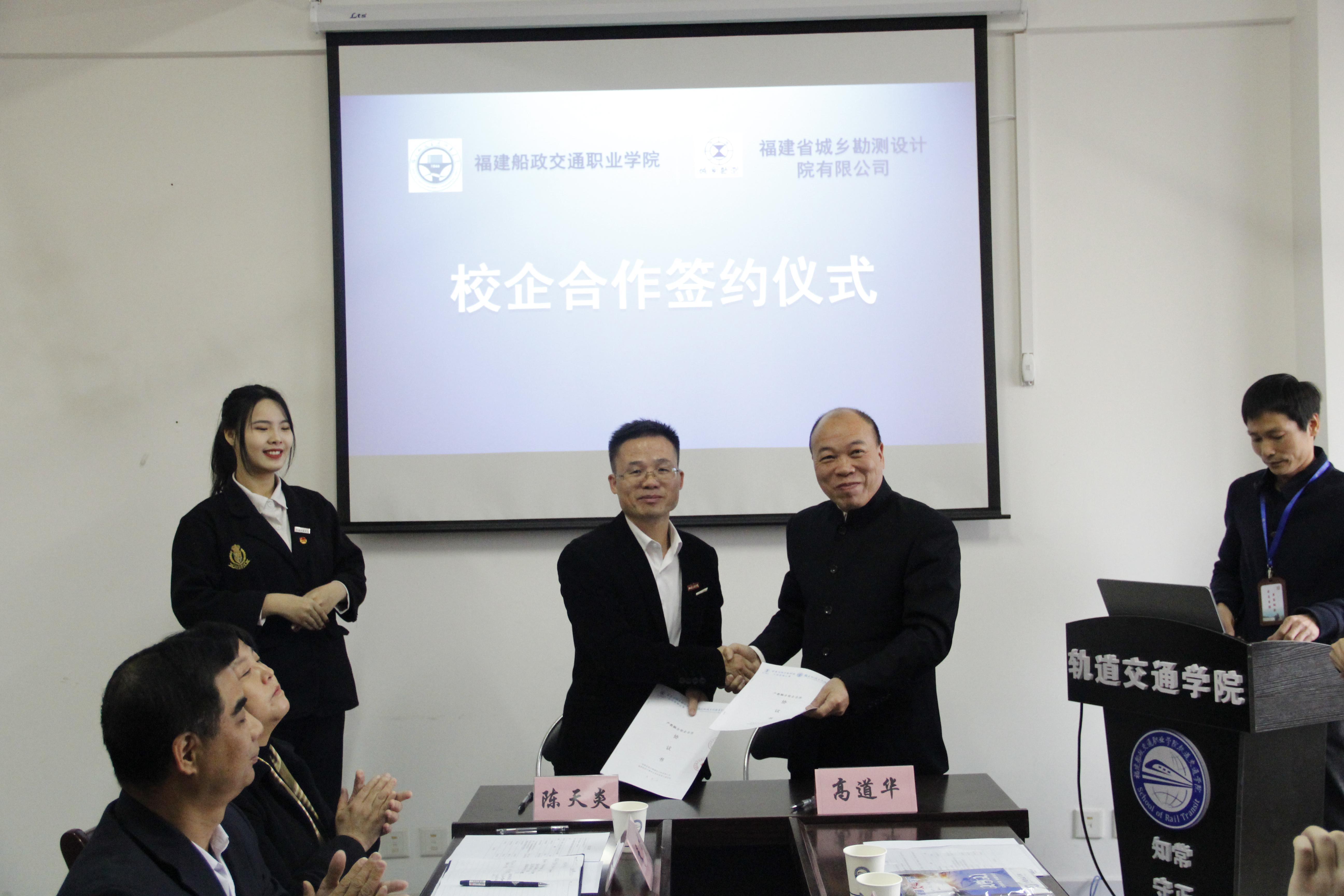 隨后舉行了校企合作簽約儀式,我院院長(zhǎng)陳天炎代表軌道交通學(xué)院同廣州南方測(cè)繪科技股份有限公司、中鐵二十四局集團(tuán)福建鐵路建設(shè)有限公司、廈門港路工程技術(shù)有限公司、福建省城鄉(xiāng)勘測(cè)設(shè)計(jì)院有限公司進(jìn)行合作簽約。