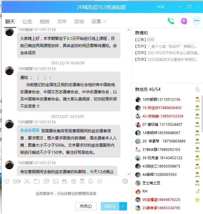 班主任充分利用網(wǎng)絡平臺,如班級的QQ群,welink等組織開展視頻班會,以防疫宣傳教育為主題,強調自我防控的重要性,分析了當前疫情防控的形勢,傳達了學校加強疫情防控的部署和要求,強調了“停學不停課”的教學安排。同學們積極參與,踴躍發(fā)言,他們有些分享了自己在家學習生活的心得,表達了打贏疫情防控阻擊戰(zhàn)的堅強決心。激發(fā)了學生們的社會擔當,班會達到了較好的效果。