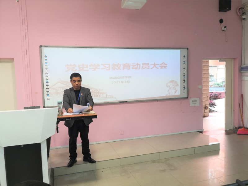 2021年3月24日,軌道交通學院在北區(qū)二號樓1-3多媒體教室召開黨史學習教育動員大會。軌道交通學院黨政領(lǐng)導(dǎo)班子、全院教職工參加會議,會議由孫基書記主持。